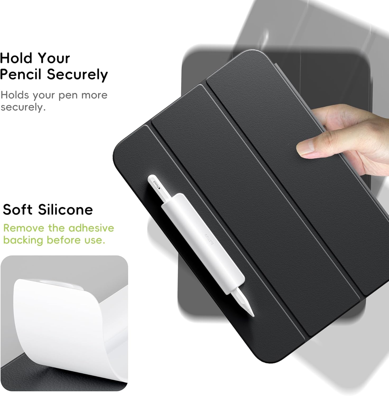 - 【Strong Reusable Adhesive】Adopting Strong Adhesive sticky,easy to stick and remove.simply peel away the adhesive backing and stick the pencil holder to your iPad case.The reusable adhesive could restick on any flat surface and won’t leave a mark when you you take it off for another position or other case.