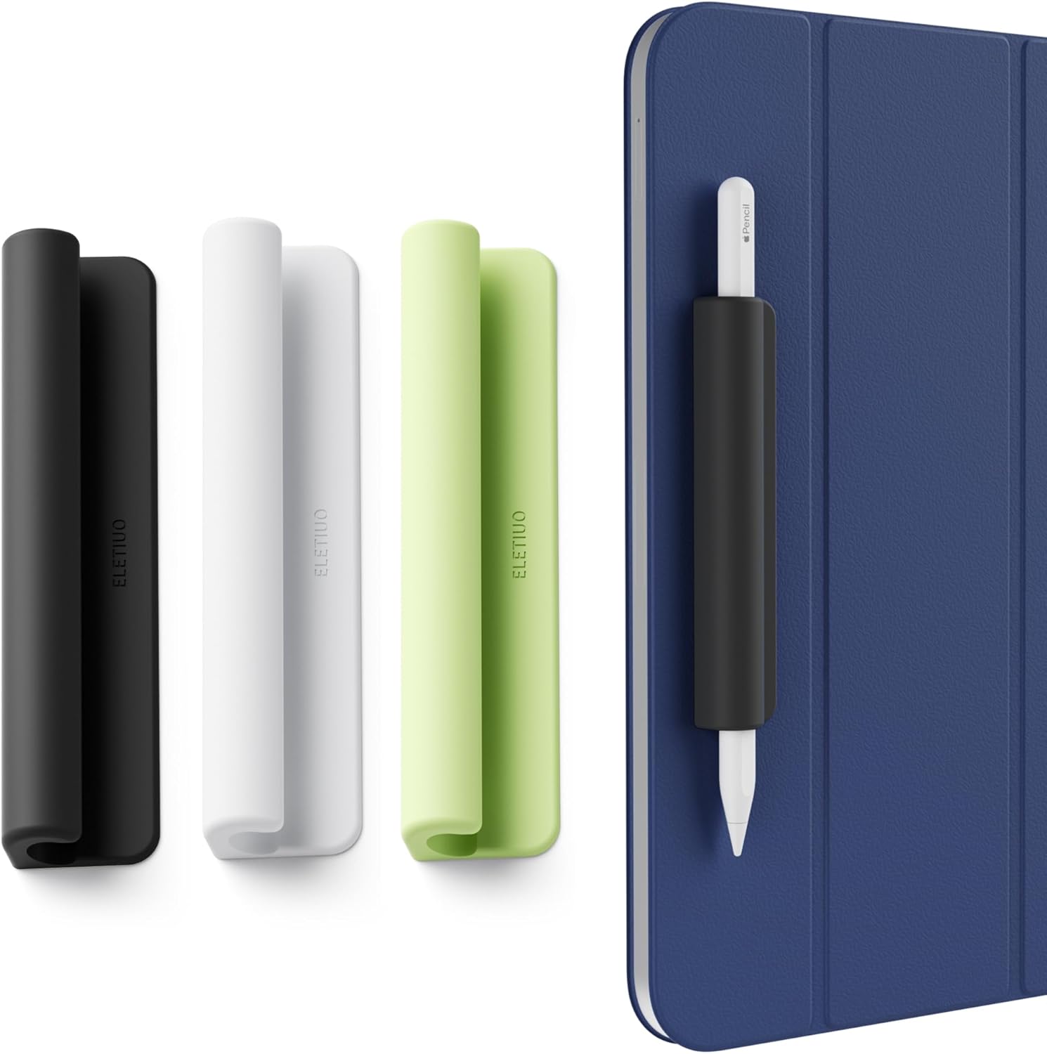 ELETIUO 3 Pack Silicone Pencil Holder Sleeve,Compatible with Apple Pencil (USB-C),Apple Pencil 1st/ 2nd Generation,Strong Adhesive Sticky Attached to iPad Case for Stylus Pens,White,Black,Green