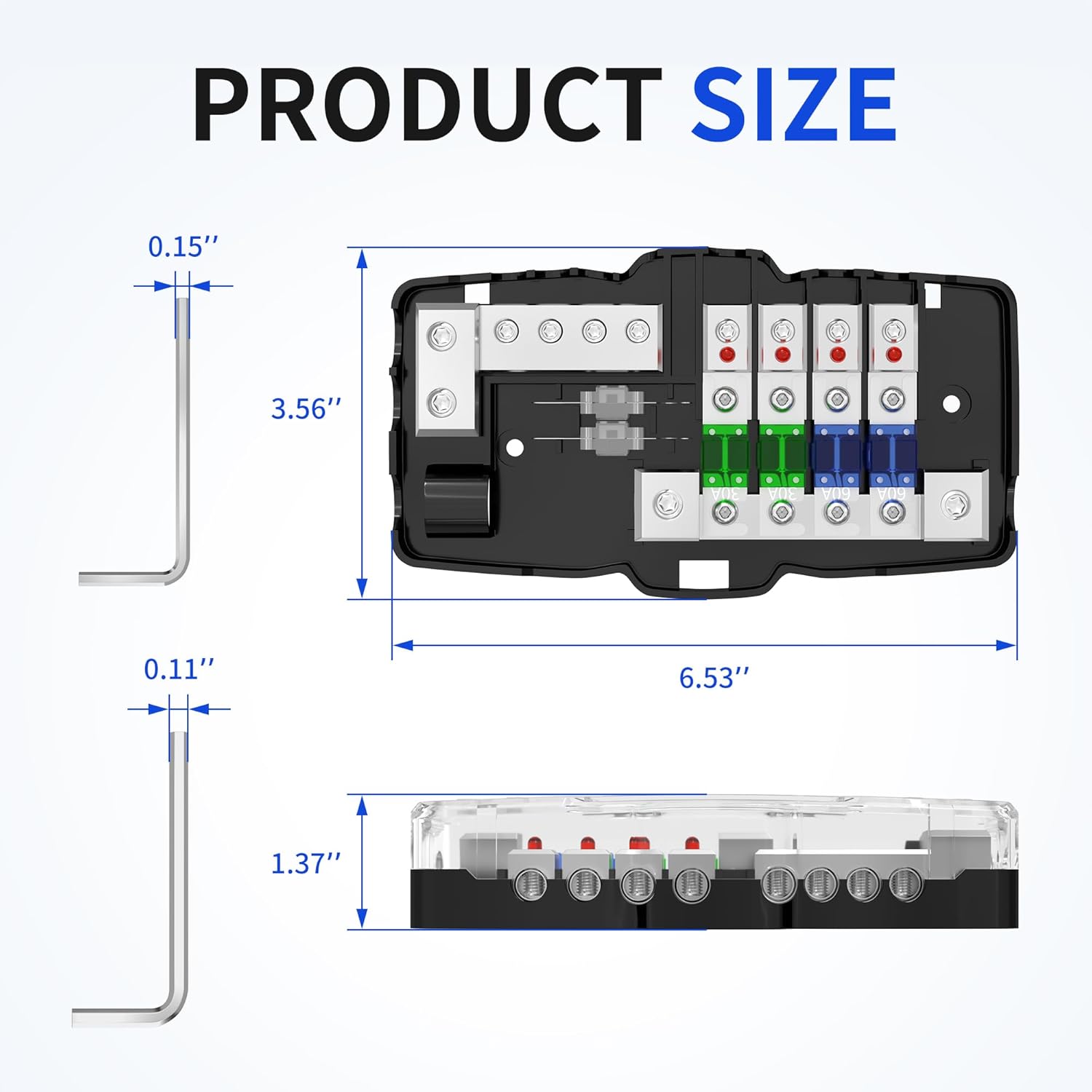 - Application:4 way fuse box distribution block is suitable for the amplifier or audio stereo system of car, boat, car, truck, marine, etc