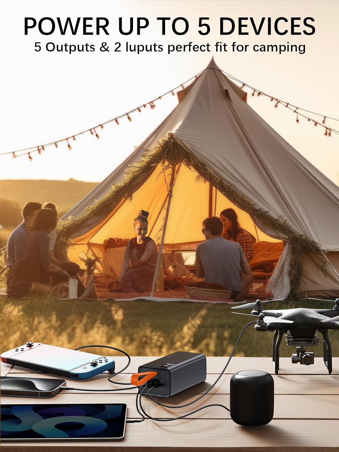 - PD & QC 3.0 POWER BANK FAST CHARGING : This large capacity power bank support PD & QC 3.0, it has 2 of 30W USB output port, and 1 of 20W USB-C output port. This portable battery charger can charge your phone to 60% in just 30 minutes, save your precious time. And it is a charging station for the family - when traveling or there is a power outage, the whole family only need this large-capacity powerbank supply to meet the charging needs. It can be a great support to you in emergency situation. (Can't charge laptop and can't take it on the plane.)