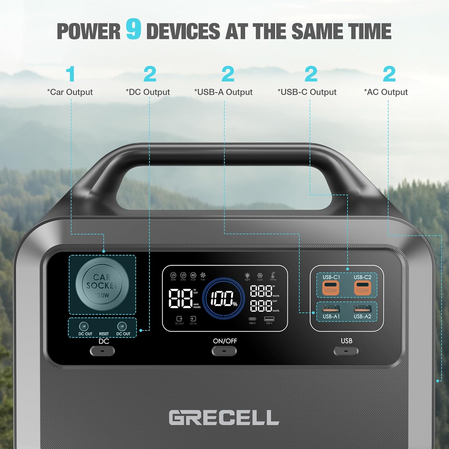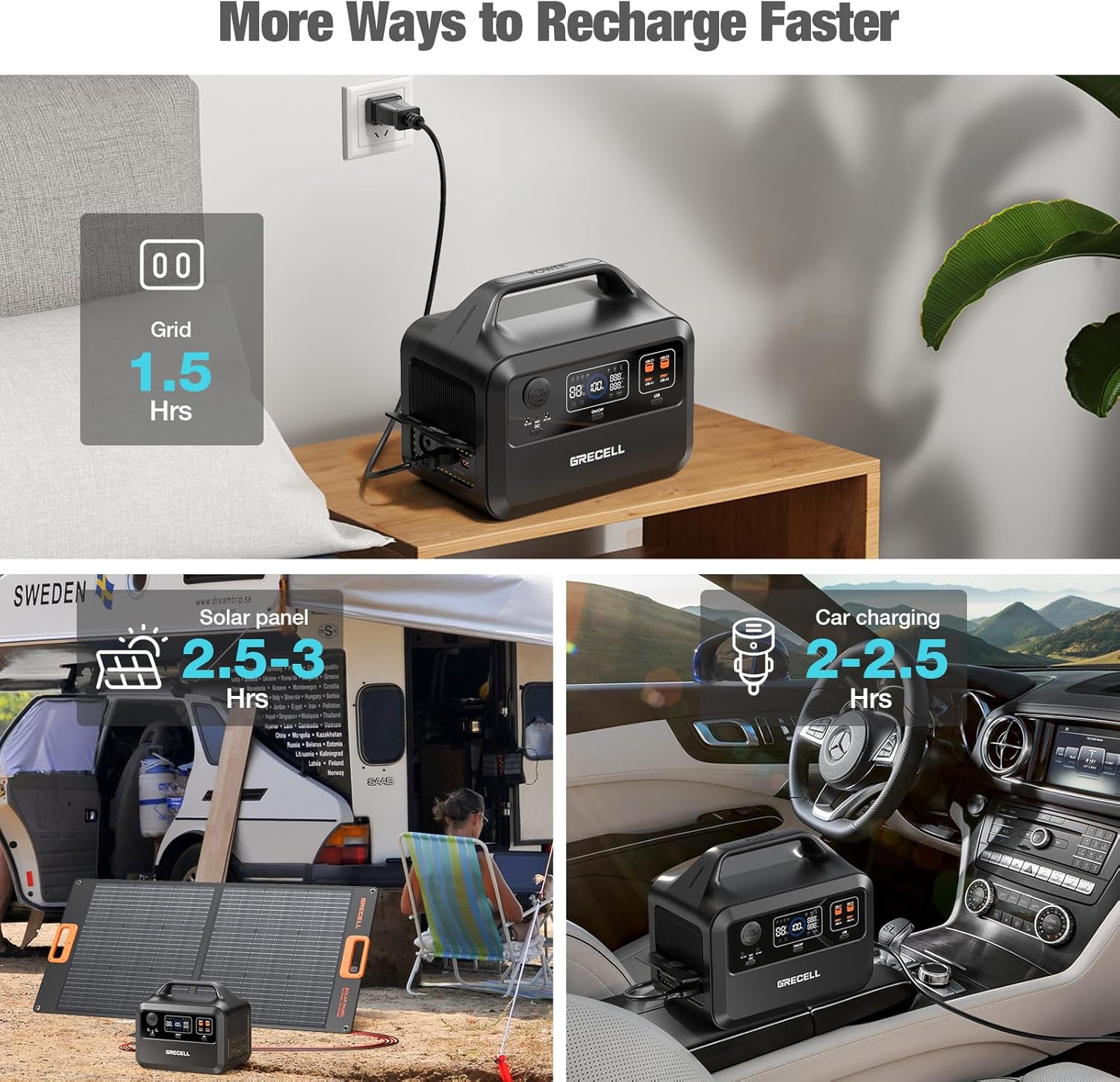 GRECELL Portable Power Station 600, 110V/600W Solar Generator(Surge 1200W), 460Wh Backup LiFePO4 Battery for Outdoor Home Emergency