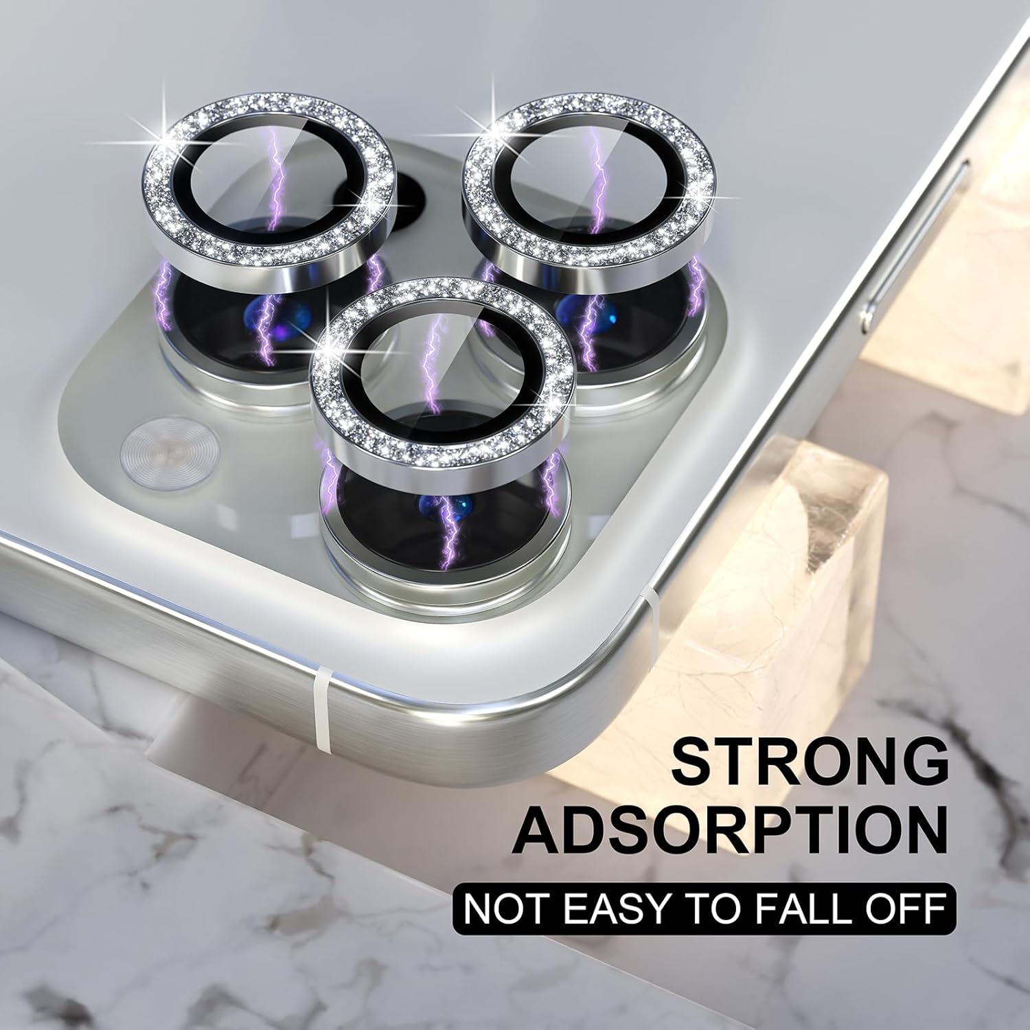 - Personalized Decoration: Made of high-quality aviation aluminum metal ring and 9H tempered glass and inlaid with bling rhinestones to give your 16 Pro/Pro Max camera lens a diamond gorgeous appearance, shining in the sun, very eye-catching and complimentary.