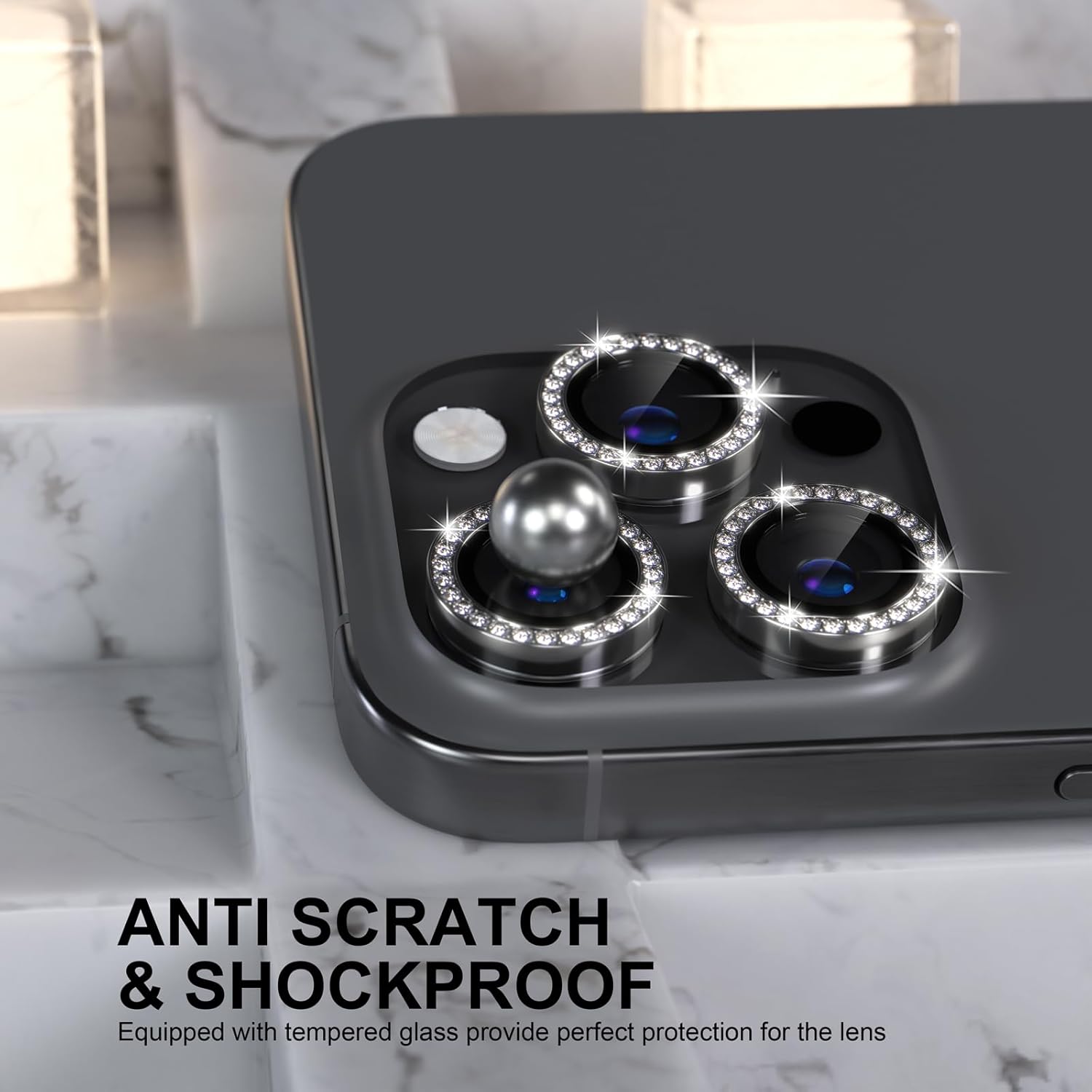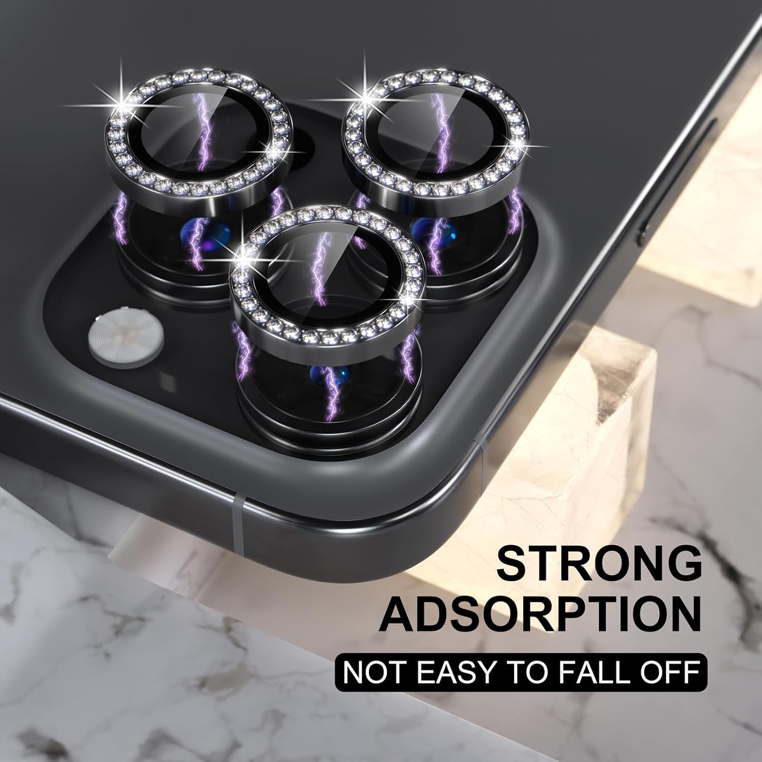 - Personalized Decoration: Made of high-quality aviation aluminum metal ring and 9H tempered glass and inlaid with bling rhinestones to give your 16 Pro/Pro Max camera lens a diamond gorgeous appearance, shining in the sun, very eye-catching and complimentary.