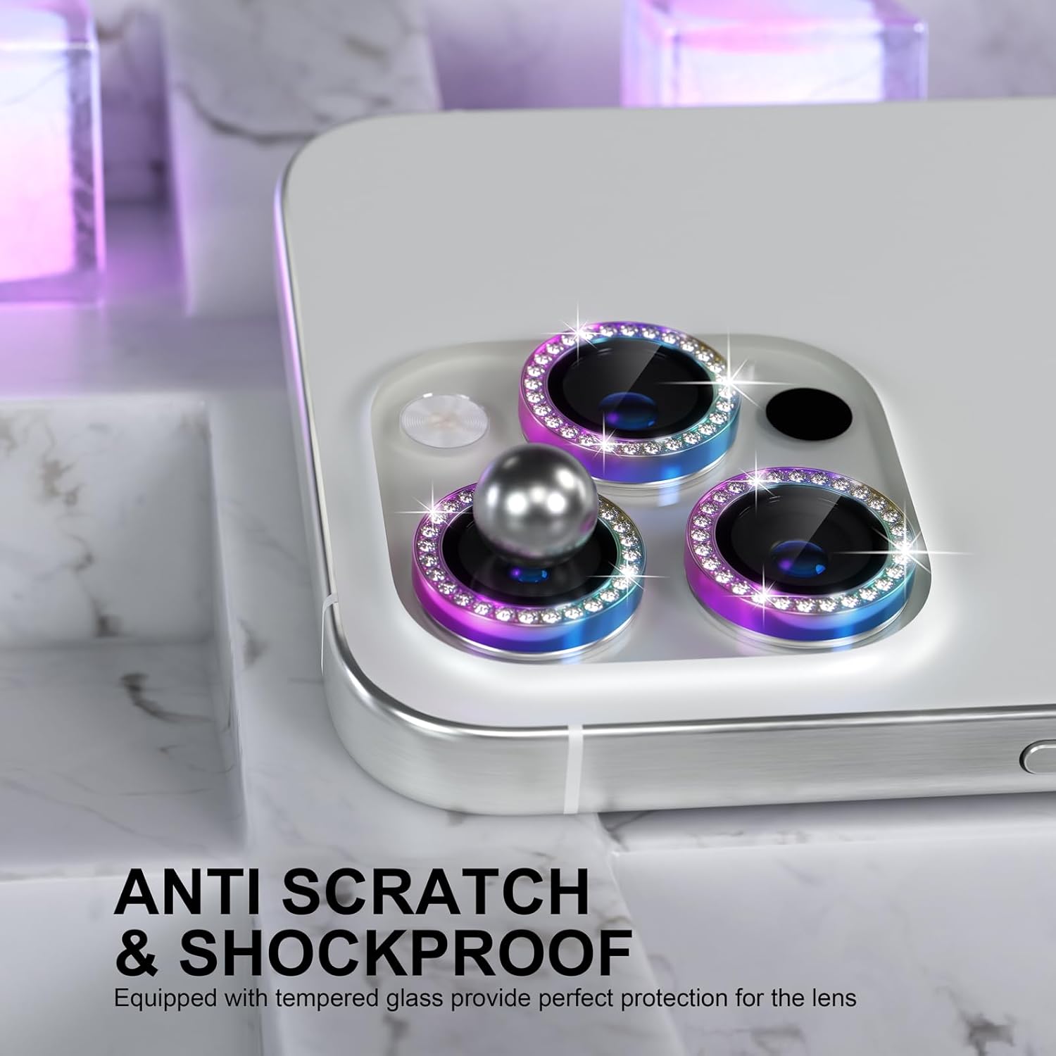 - Personalized Decoration: Made of high-quality aviation aluminum metal ring and 9H tempered glass and inlaid with bling rhinestones to give your 16 Pro/Pro Max camera lens a diamond gorgeous appearance, shining in the sun, very eye-catching and complimentary.