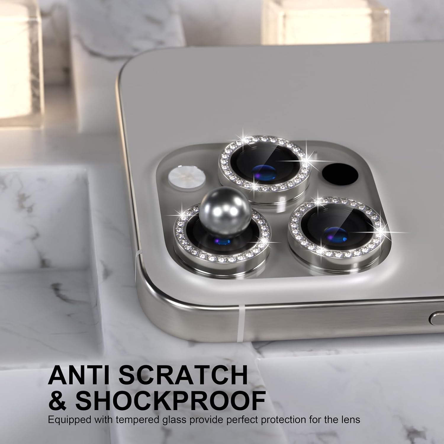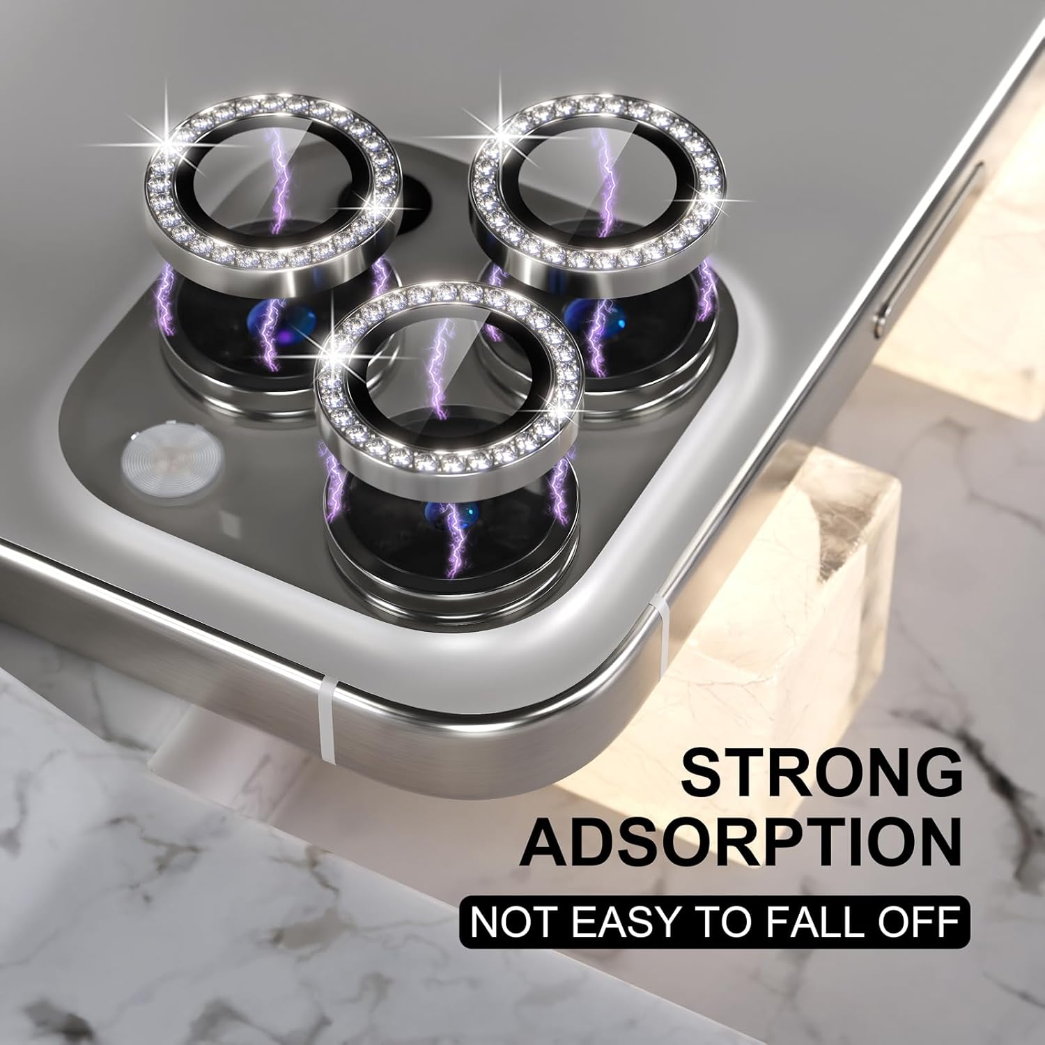 - Personalized Decoration: Made of high-quality aviation aluminum metal ring and 9H tempered glass and inlaid with bling rhinestones to give your 16 Pro/Pro Max camera lens a diamond gorgeous appearance, shining in the sun, very eye-catching and complimentary.