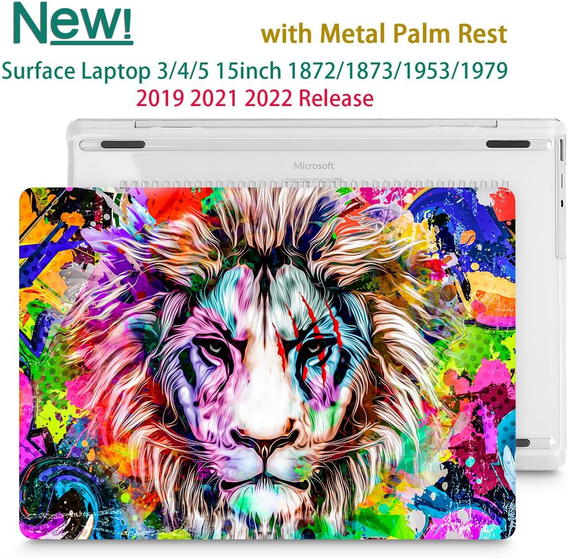 Tuiklol Case for 15 Inch Microsoft Surface Laptop 5/4/3 2022-2020, Model 1979/1953/1872/1873 Hard Shell Cover, Keyboard Cover+Screen Protector+Dust Plugs,Lion