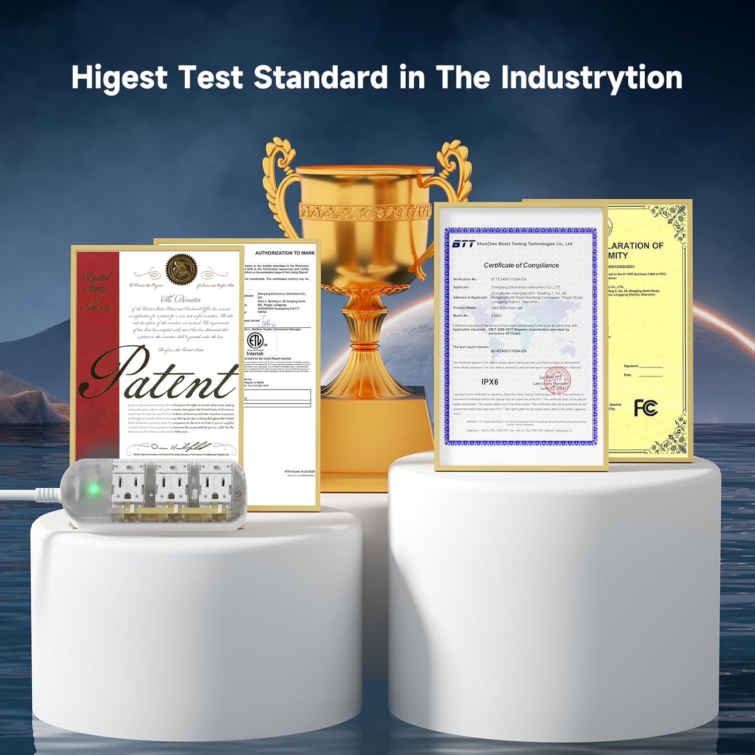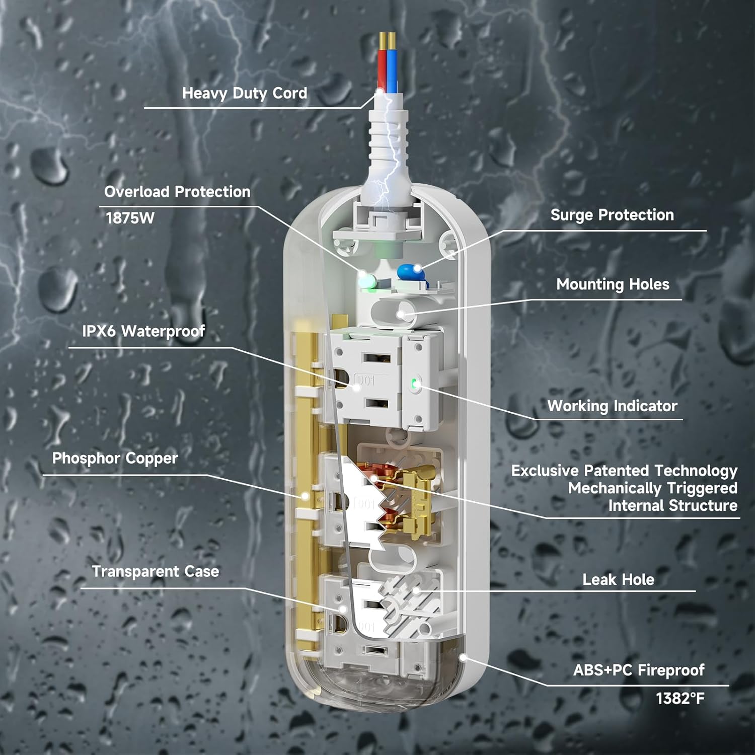 - Whether you're looking for a heavy-duty power strip for your home office, an outdoor power strip weatherproof for your garden parties, or a travel power strip for your next trip, our outdoor power strip weatherproof design is perfect for you, it comes with an electric shockproof, overload protection, IPX6 waterproof, heat-retardant and so on, it ensures the safety of your device and family