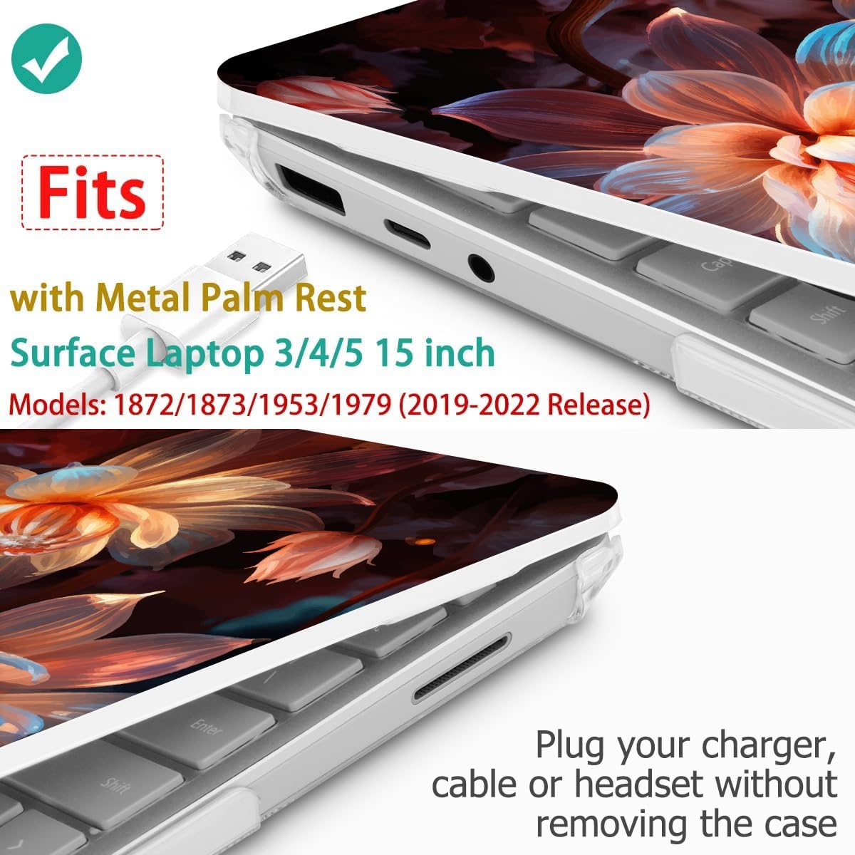 Tuiklol Case for 15 Inch Microsoft Surface Laptop 5/4/3 2022-2020, Model 1979/1953/1872/1873 Hard Shell Cover, Keyboard Cover+Screen Protector+Dust Plugs,Luminescent Flowers