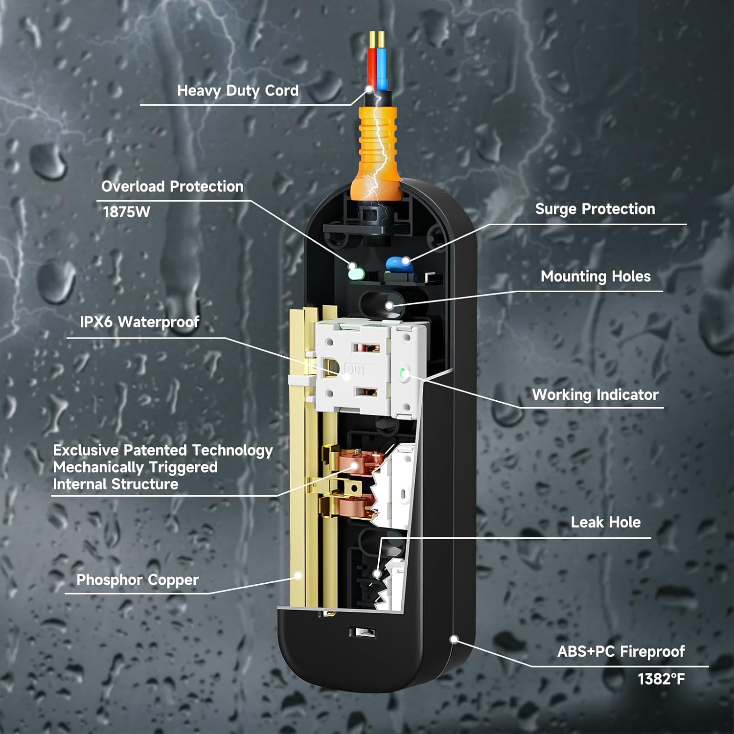 - Whether you're looking for a heavy-duty power strip for your home office, an outdoor power strip weatherproof for your garden parties, or a travel power strip for your next trip, our outdoor power strip weatherproof design is perfect for you, it comes with an electric shockproof, overload protection, IPX6 waterproof, heat-retardant and so on, it ensures the safety of your device and family