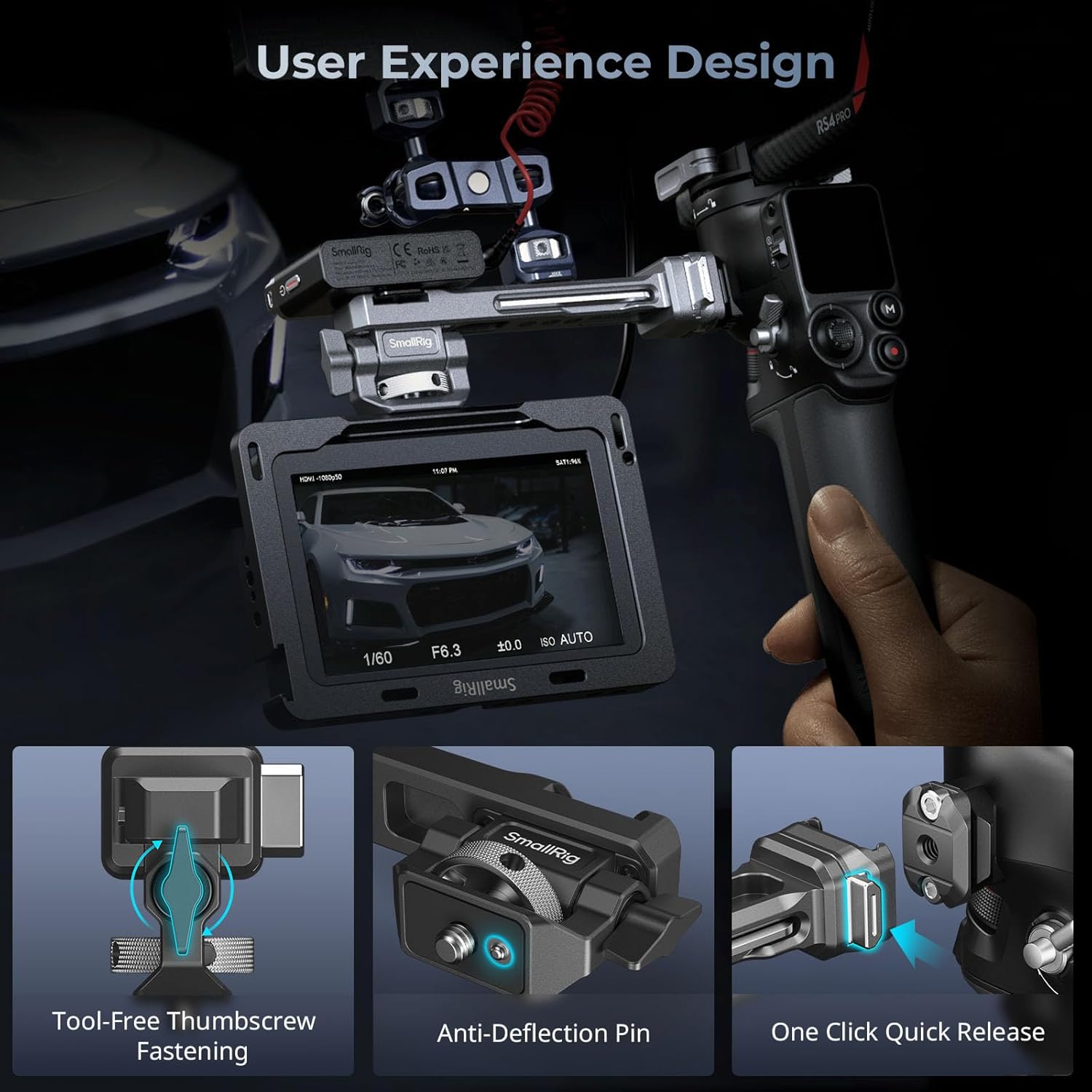 - Quick Release Design: SmallRig Monitor Mount 4637 adopts the exclusive HawkLock Quick Release design, with a quick release NATO rail that can be easily disassembled by pressing a button with your finger, saving you valuable time and improving shooting efficiency and experience