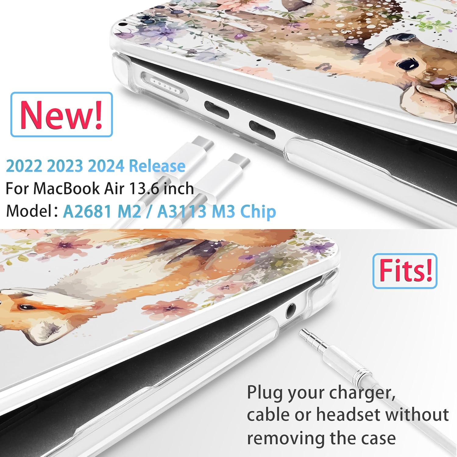 Mektron for 2025 M4 MacBook Air 13.6 Inch A3240 Case Fits 2023 A2681 M2 2024 A3113 M3 Chip with Liquid Retina Display Touch ID, Printed Plastic Hard Shell Cover for MacBook Air 13.6", Fox and Deer