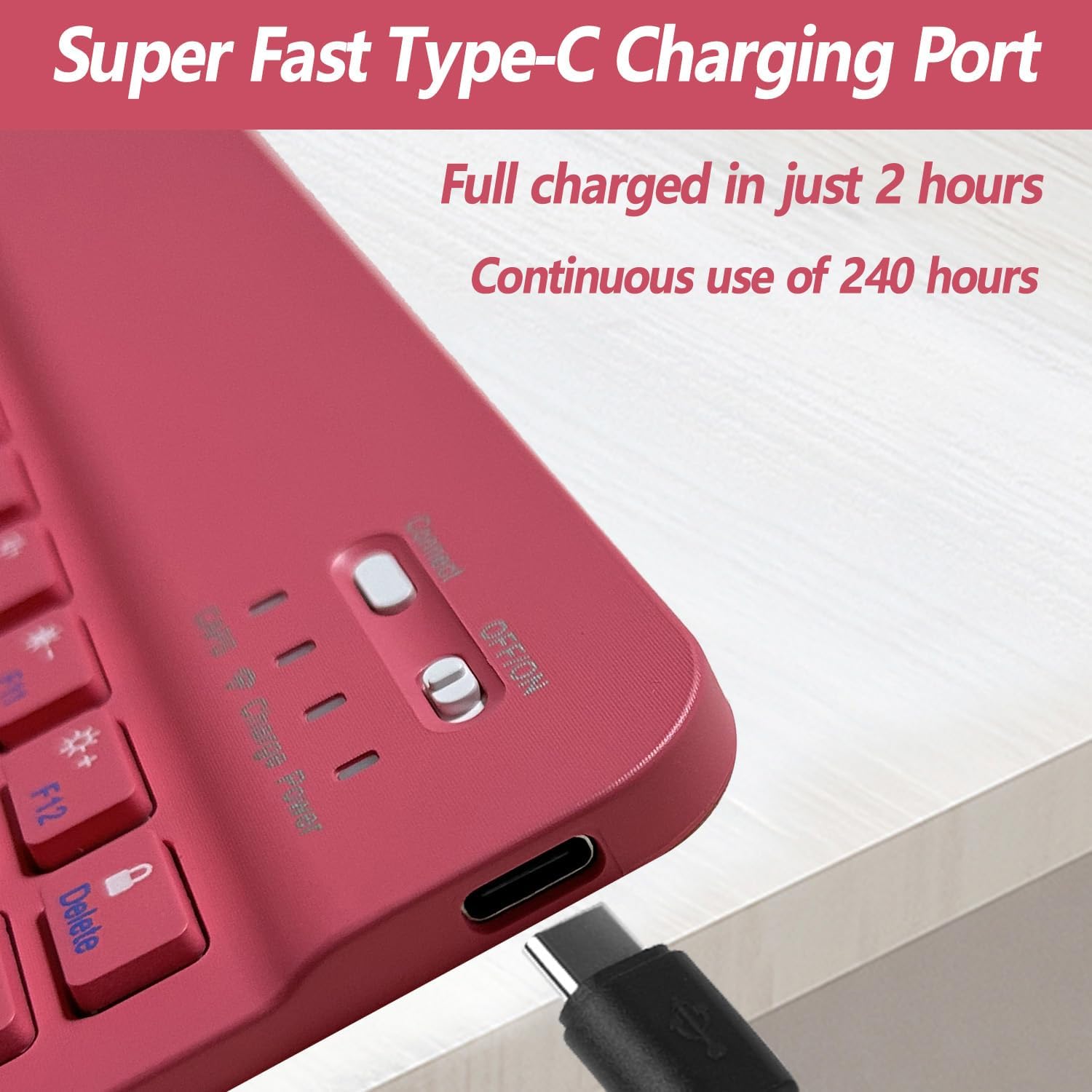 - Rechargeable and Long-life Battery: This keyboard has a built-in large-capacity rechargeable battery, which is more energy-saving and lower consumption. You can use it for at least 360 hours. It can be fully charged in 2.5 hours using a Type-C charging cable, which is very convenient