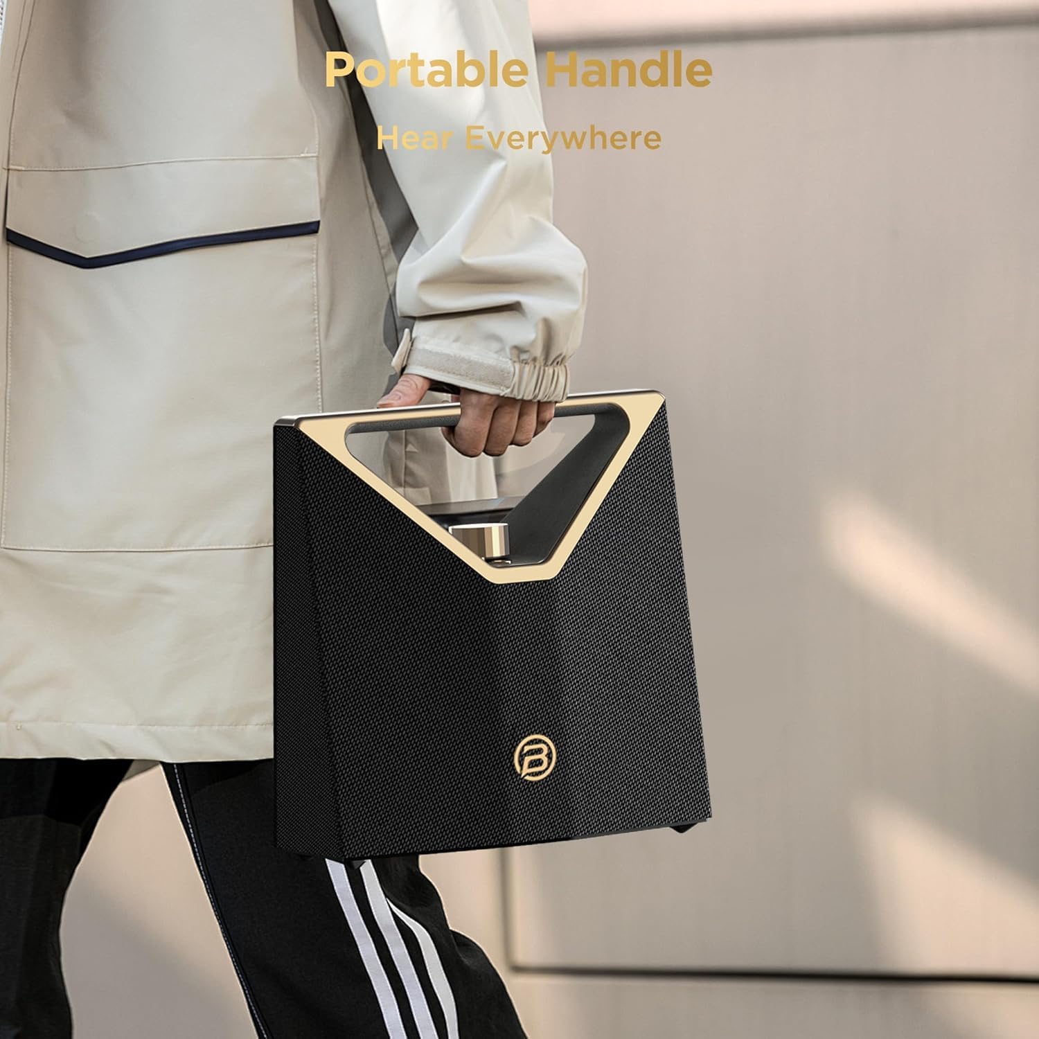 BUGANI Brief Plus Bluetooth Speaker Portable 80W, 12H Long Playtime, Bluetooth Broadcast 100+ Connection, Supports AUX/USB, Outdoor Speaker for Camping, Beach, Party, Golden