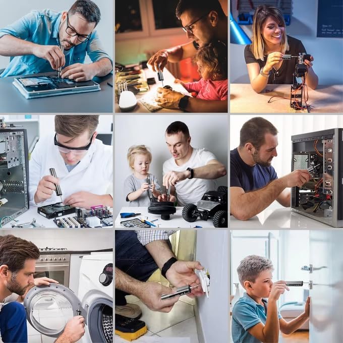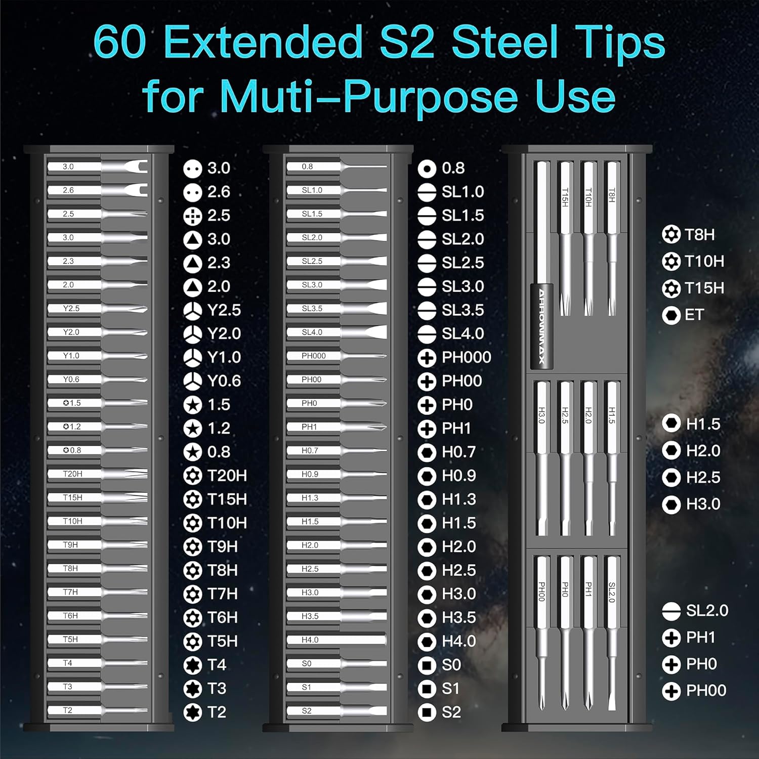 - 60 in 1 Metal Drill Bits: The mini electric screwdriver comes with 60 drill bits in 9 categories to help you complete various repair tasks. S2 hardened steel ensures a long and safe service life. Quality tools lead to quality work.
