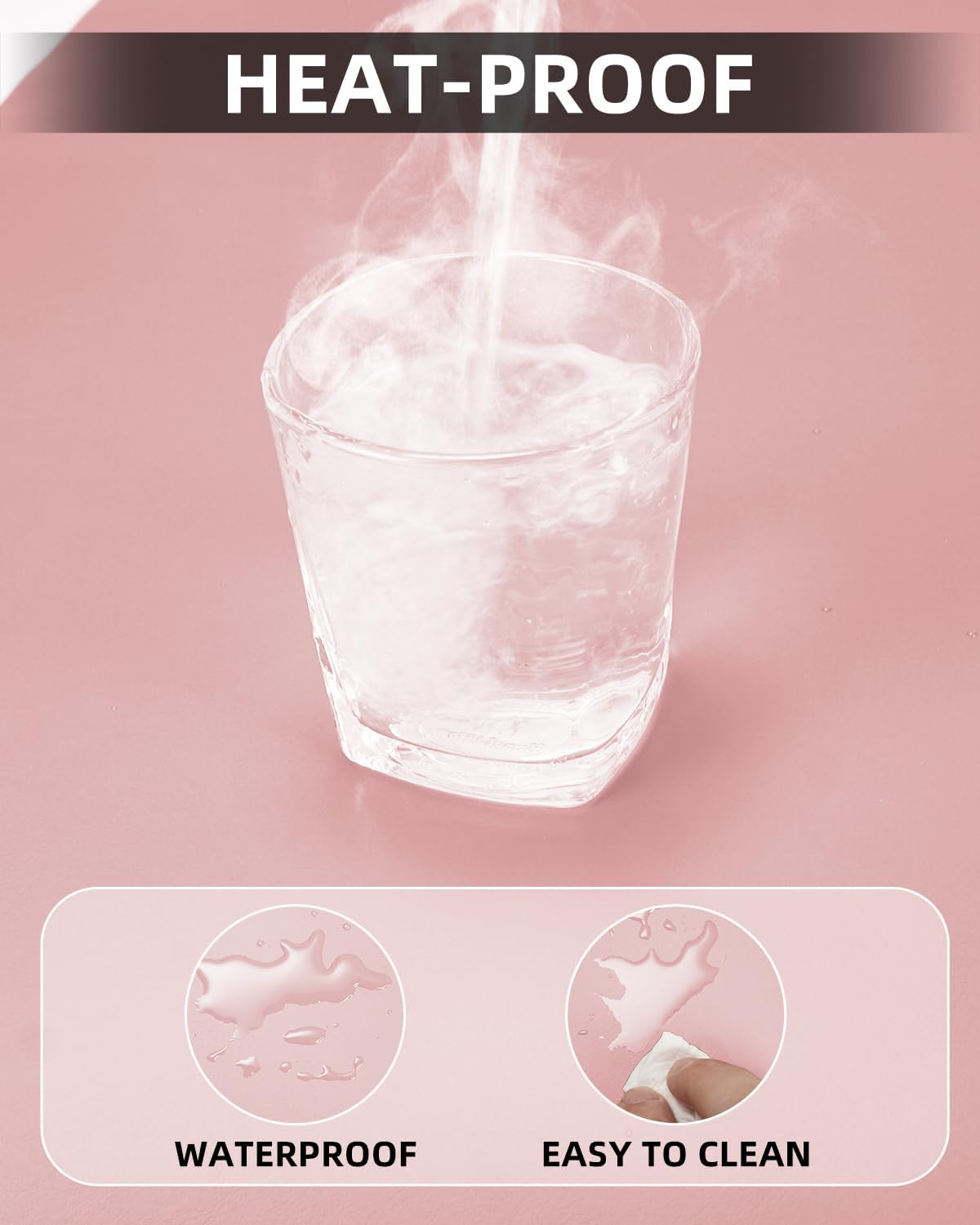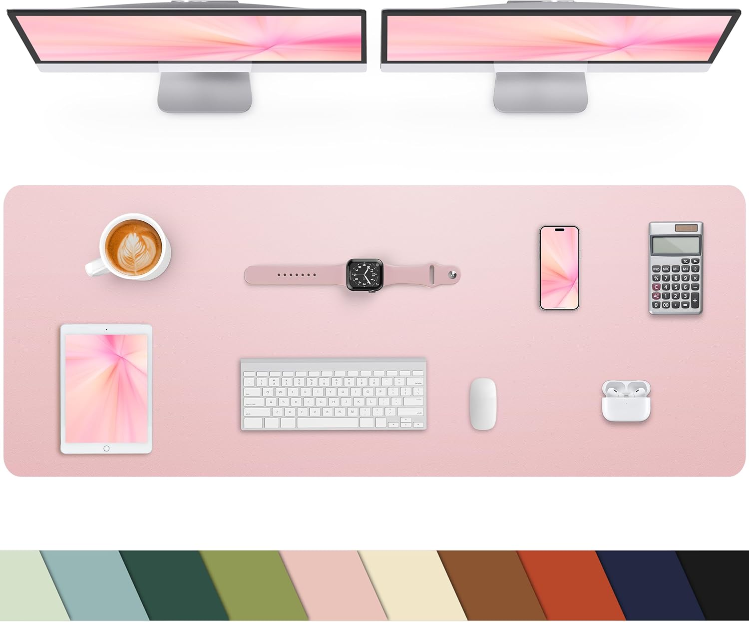 Extra Large Leather Desk Protector, Office Mat, Mouse & Laptop Pad, Non-Slip Blotter, Waterproof Writing Pad - Rose Pink, 55" x 17"