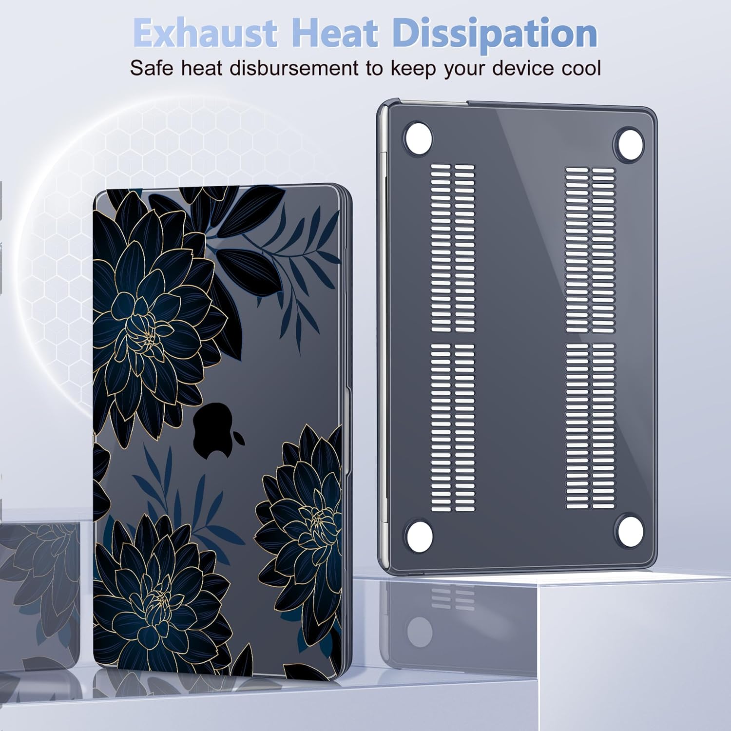 - Perfect Fit: Precise cutouts allow to access all functions and controls easily. Plug your charger, cable or headset without removing the case. The bottom cover is designed with ventilation vents to help dissipate heat and prevent your laptop from overheating. Four silicone feet on the bottom cover keep your laptop secure and stable