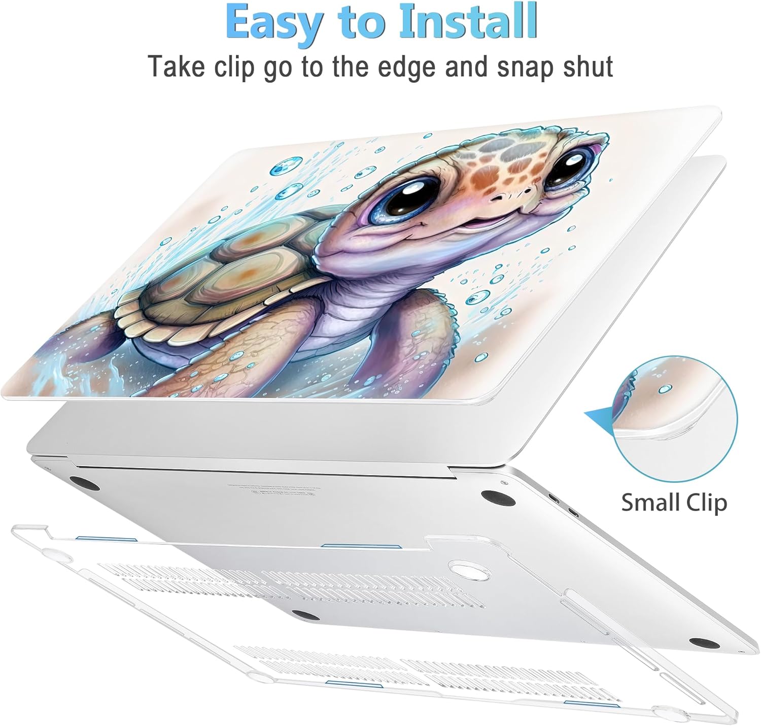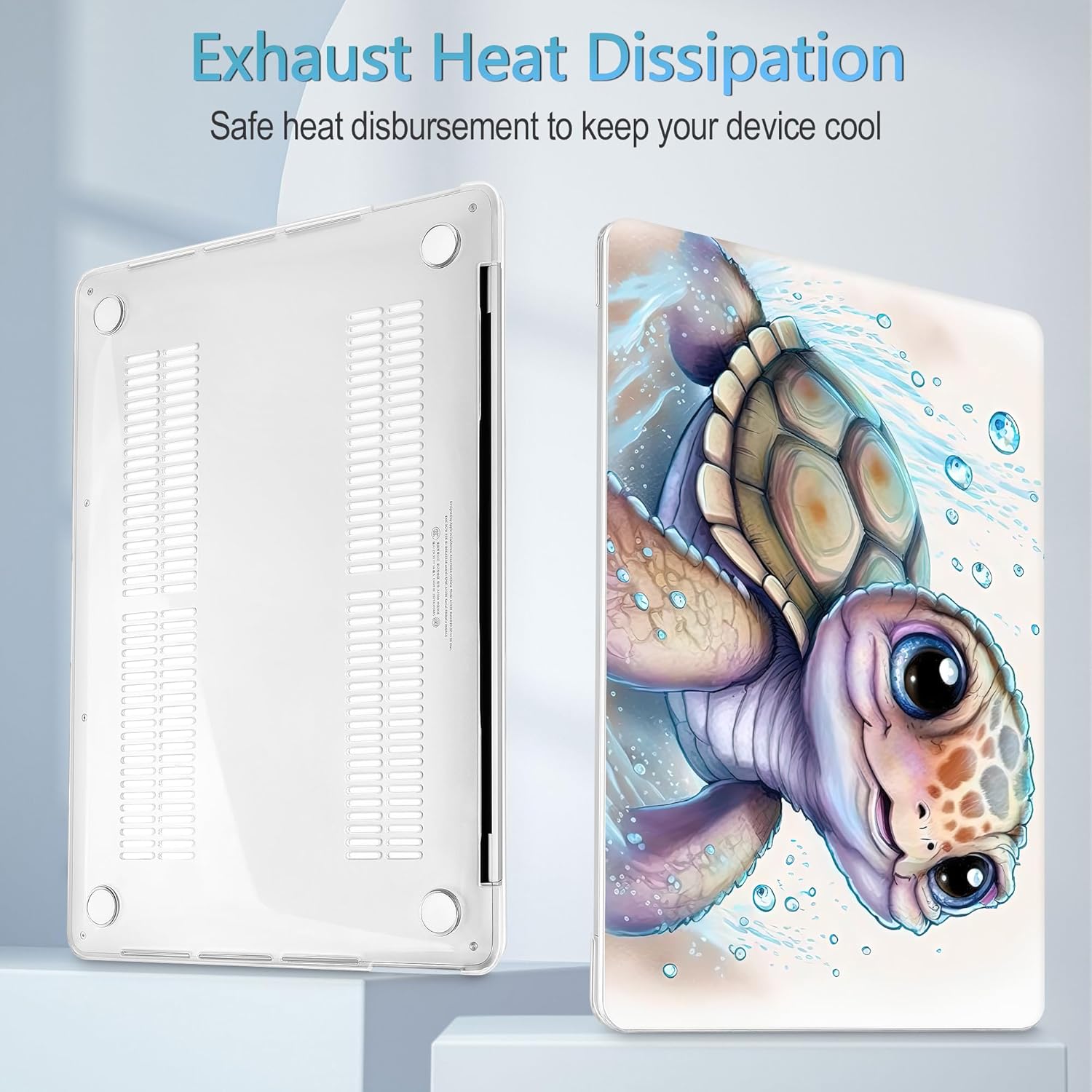 Mektron Case for MacBook Pro 16 Inch A2141 Cover 2019 Release 16" with Liquid Retina Display/Touch ID, Plastic Hard Shell with Keyboard Skin & Screen Protector & Dust Plug, Cute Turtle