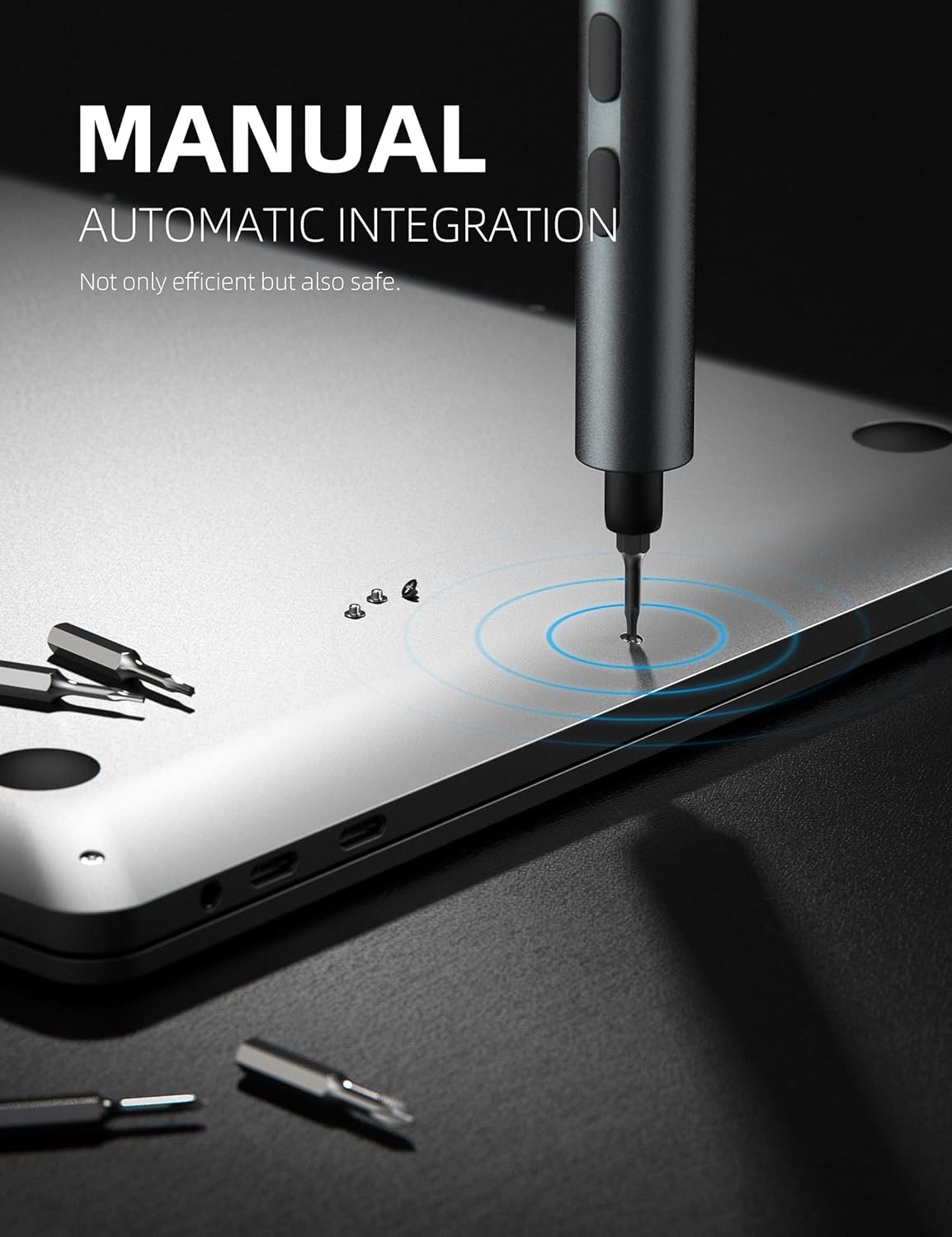 - Electric Screwdriver with Flexible Dual Mode Operation:Switch between manual and electric modes to suit your needs. Manual mode provides up to 3 N.m torque for more control, while electric mode delivers 0.2 N.m torque for delicate tasks. Ideal for repairing smartphones, laptops, cameras, watches, and other electronics, ensuring precision and screw protection.
