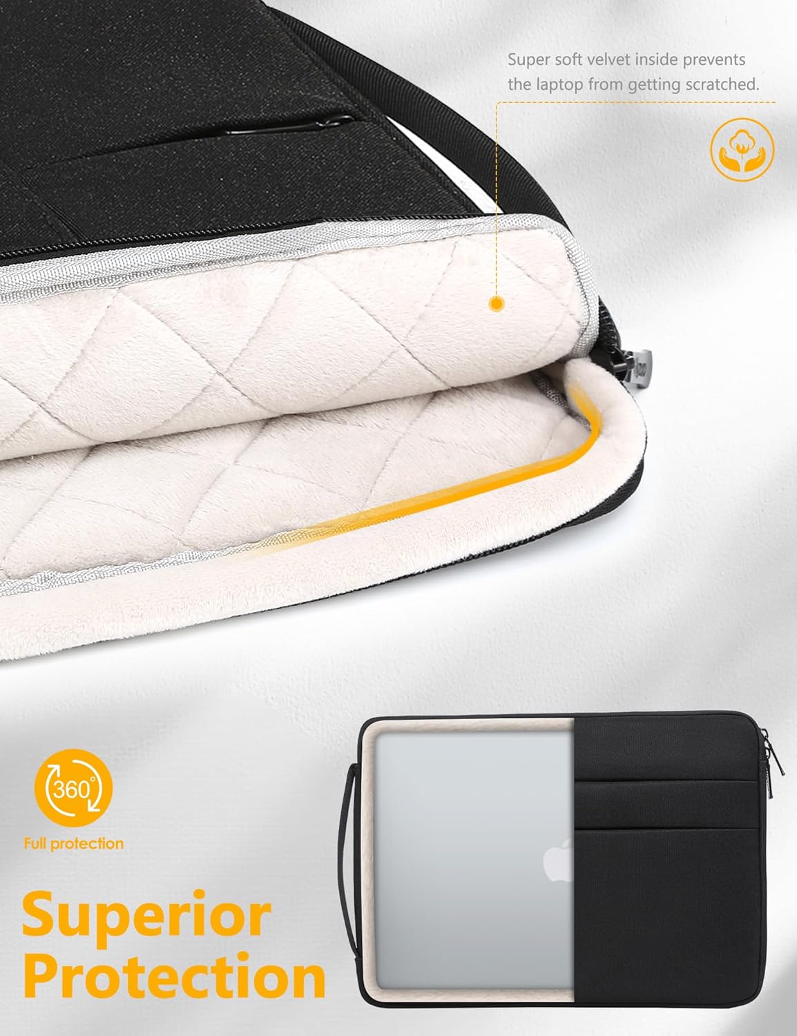 - 360° Multi-layer Superior Protection: The outer fabric is water-resistant and scratch-resistant, the middle layer is padded with 8 mm thickness to absorb bumps and shocks, and the soft velvet lining protects your laptop from scratches. There is also a 2cm wide protective ridge all around. As a result, your laptop is always tightly wrapped and protected with 360° multiple protection