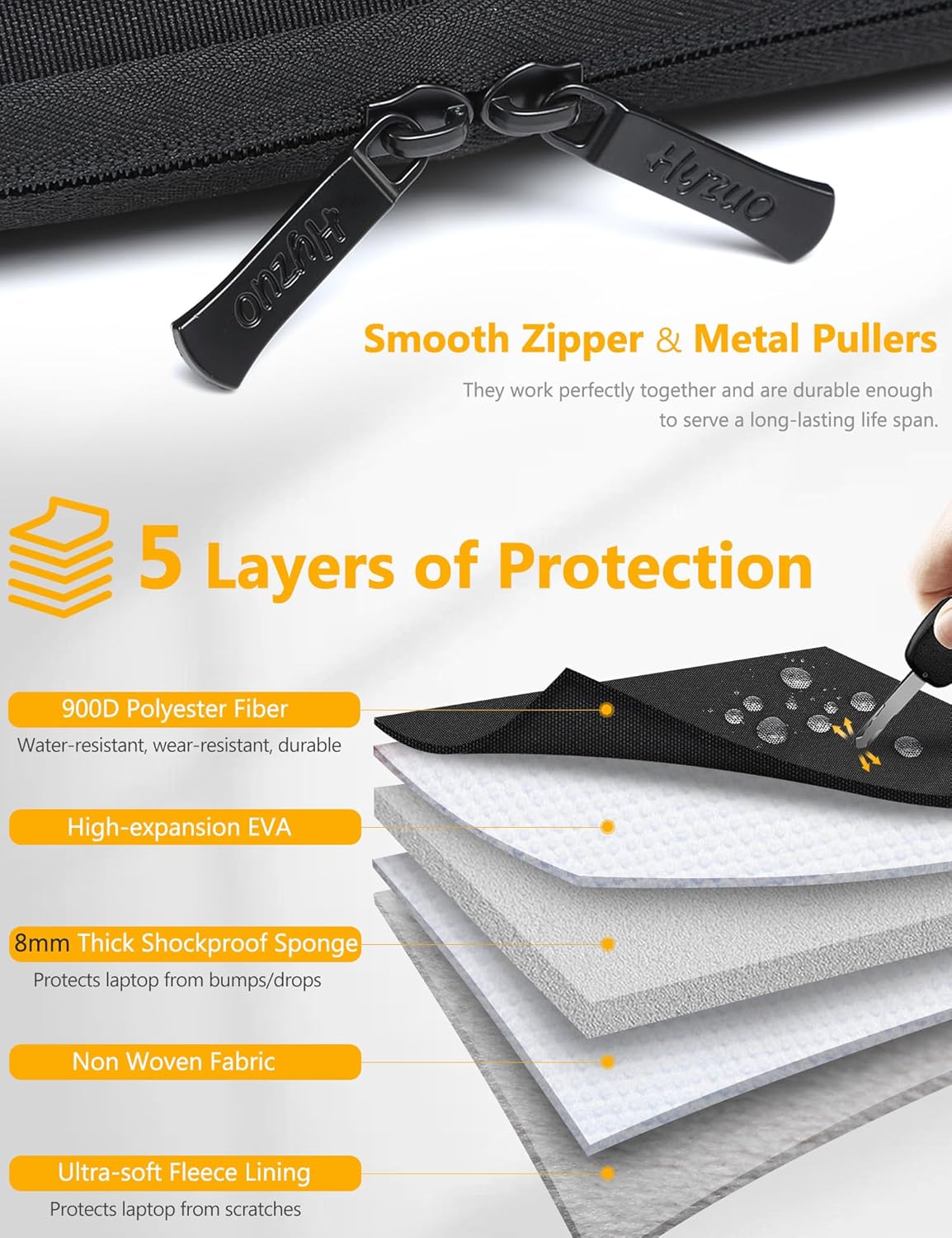 - 360° Multi-layer Superior Protection: The outer fabric is water-resistant and scratch-resistant, the middle layer is padded with 8 mm thickness to absorb bumps and shocks, and the soft velvet lining protects your laptop from scratches. There is also a 2cm wide protective ridge all around. As a result, your laptop is always tightly wrapped and protected with 360° multiple protection