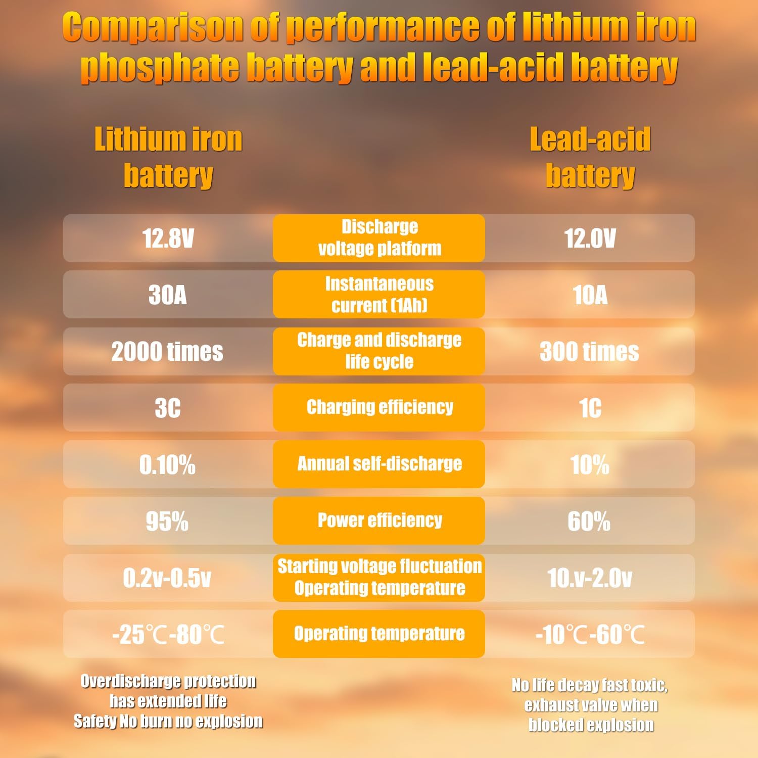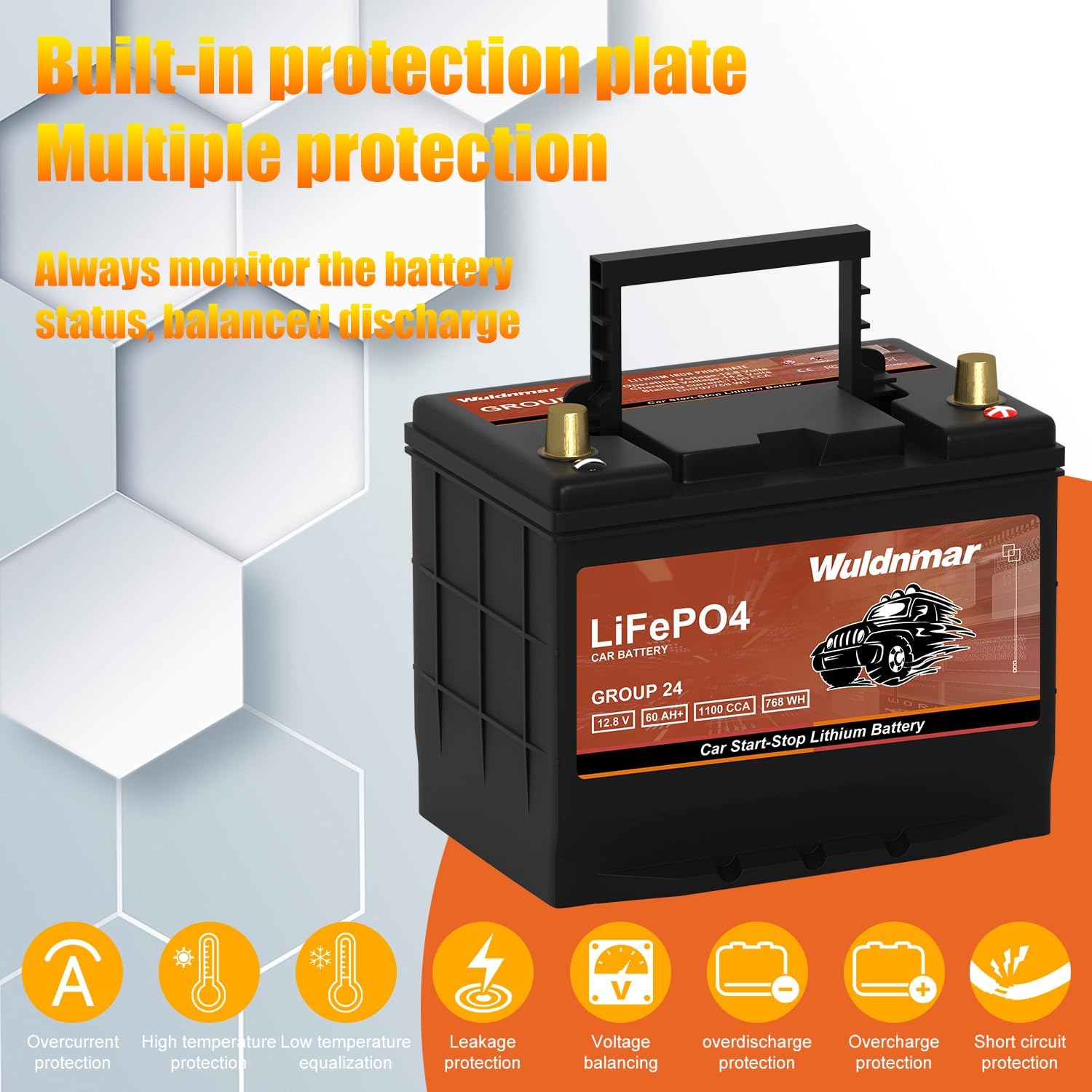 - 🔋Safe and Stable:Wuldnmar reliable and high-rate lithium iron phosphate battery material combined with BMS control circuit ensures a safe and stable performance superior to standard lead-acid batteries. This battery is better equipped to support intricate automotive electronic systems with high power demand while providing intelligent protection circuitry that prevents overcharging, over-discharging, overvoltage, or overcurrent issues.