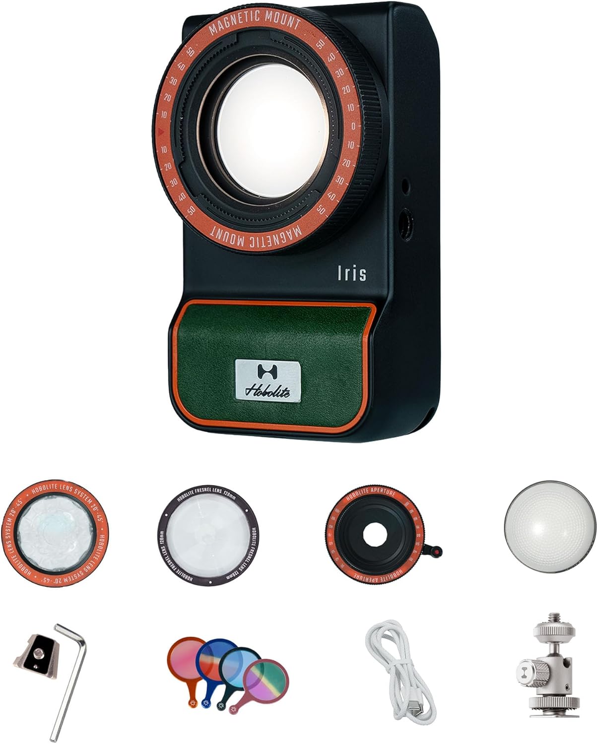- Compact & Creative: The Hobolite Iris is a 5W portable continuous LED light for photography, content creation, live streaming, and more. Its vintage point-and-shoot camera design and colored gel filters elevate the creative process. Our Iris Light Body:3.4” x 2.0” x 1.2”;Light Body Net Weight:0.35lbs