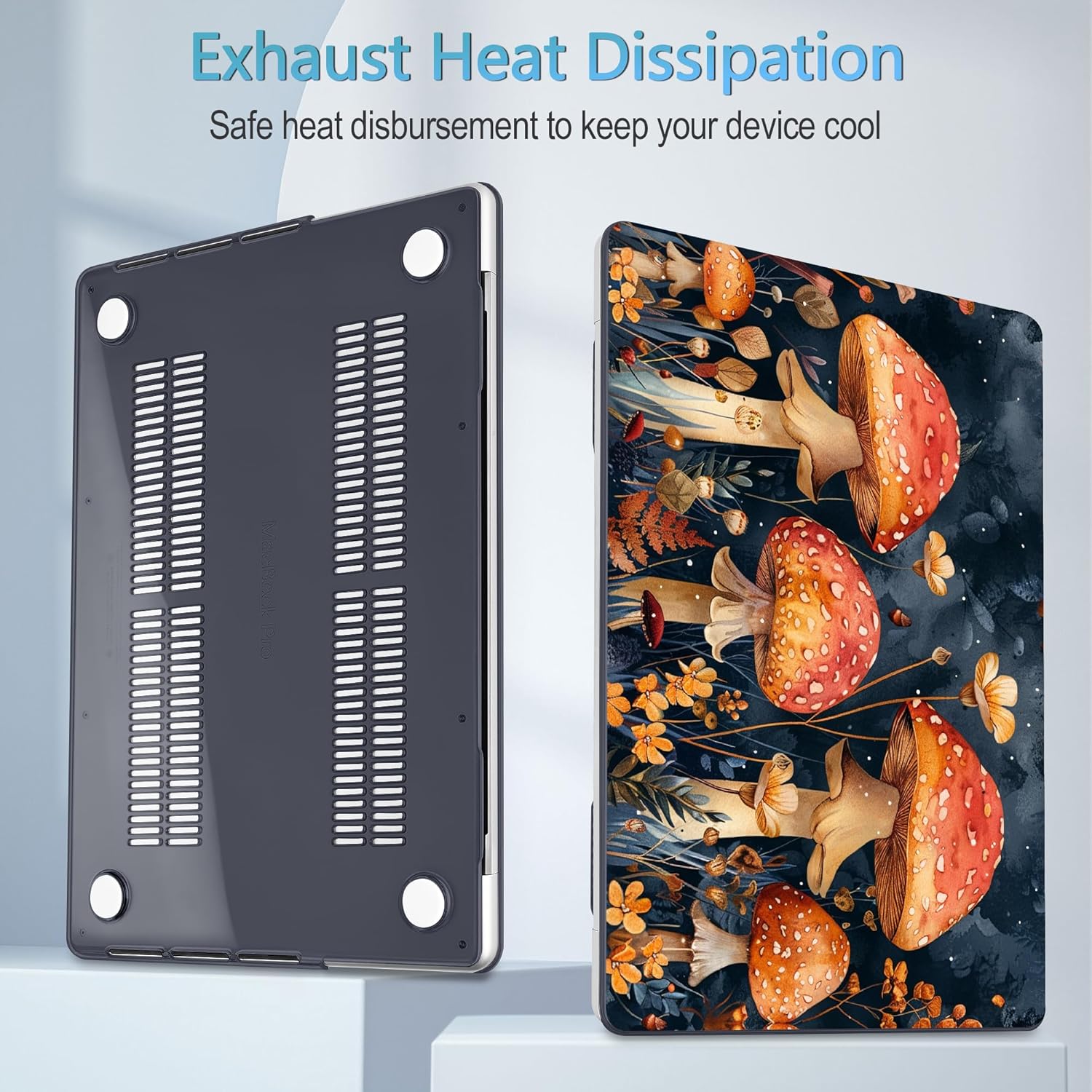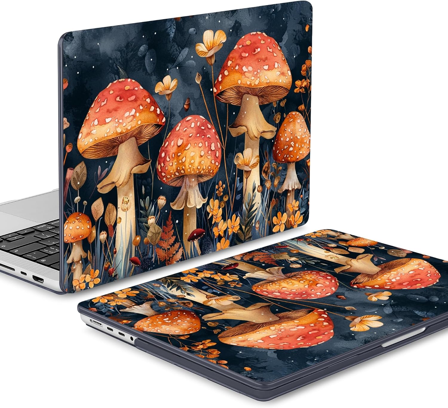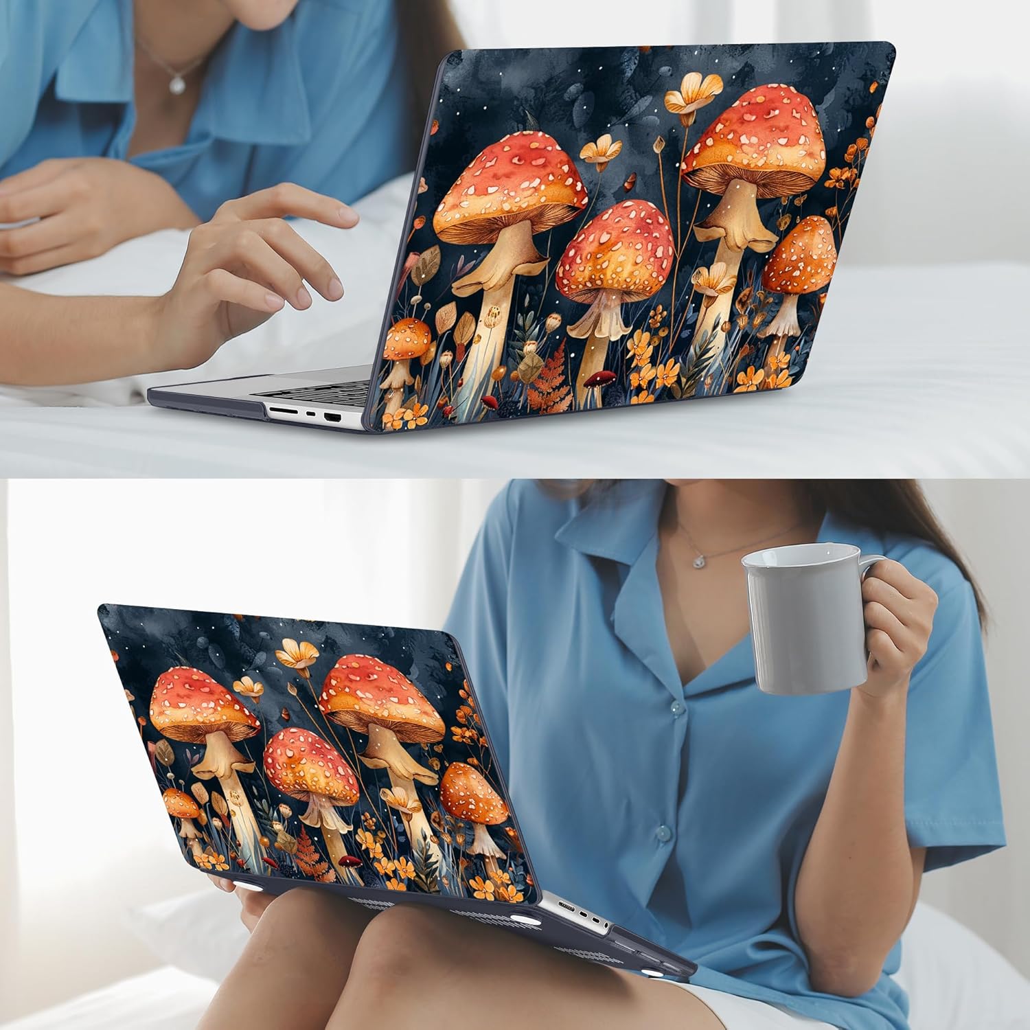 Mektron Case for MacBook Pro 16" M4 A3403 A3186 M3 A2991 M2 A2780 M1 A2485 (2021/2023/2024) Pro/Max with Touch ID, Hard Shell Plastic Laptop Cover Keyboard Cover Screen Protector, Mushrooms