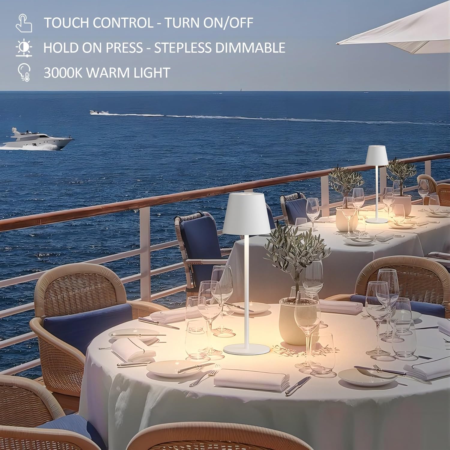 2-Pack White Cordless Table Lamp,Rechargeable LED Desk Lamp,5000mAh Battery Operated Lamp,3000K Warm Light Stepless Dimming,IP54 Waterproof Portable Table Light for Restaurant/Camping,White