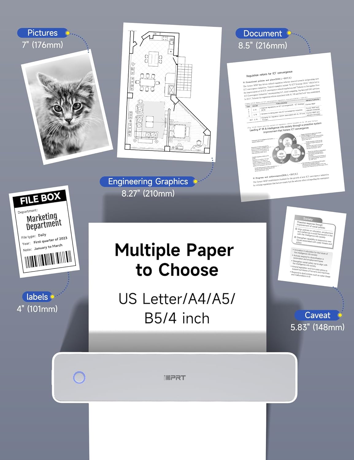 iDPRT MT610 Pro Portable Thermal Printer, 300DPI HD Mobile-Travel-Printers, Inkless-Wireless-Small-Printer for Home Use, Office, Vehicles, Bluetooth Printers Supports 8.5" x 11" US Letter&A4&A5 Size