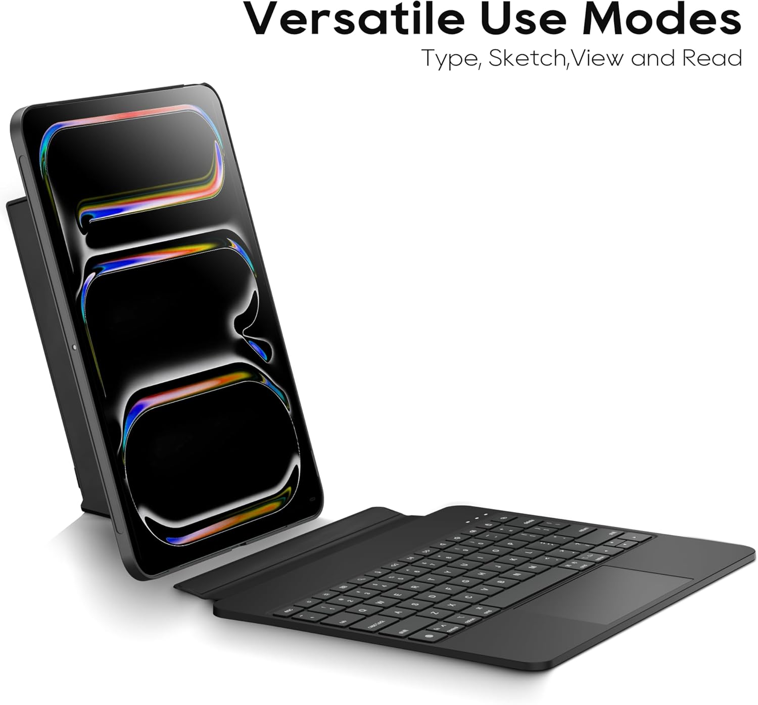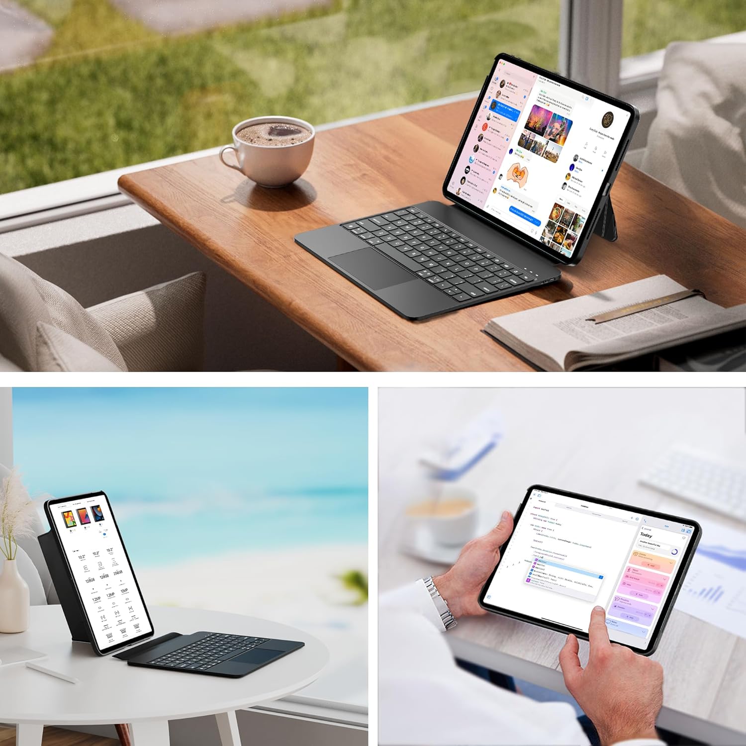 - 𝐀𝐝𝐣𝐮𝐬𝐭𝐚𝐛𝐥𝐞 𝐕𝐞𝐫𝐬𝐚𝐭𝐢𝐥𝐢𝐭𝐲: The ultra-flexible kickstand supports stand, tablet, and laptop modes, detach the keyboard for versatile use cases. The sturdy cover provides all-around protection for your iPad everywhere.