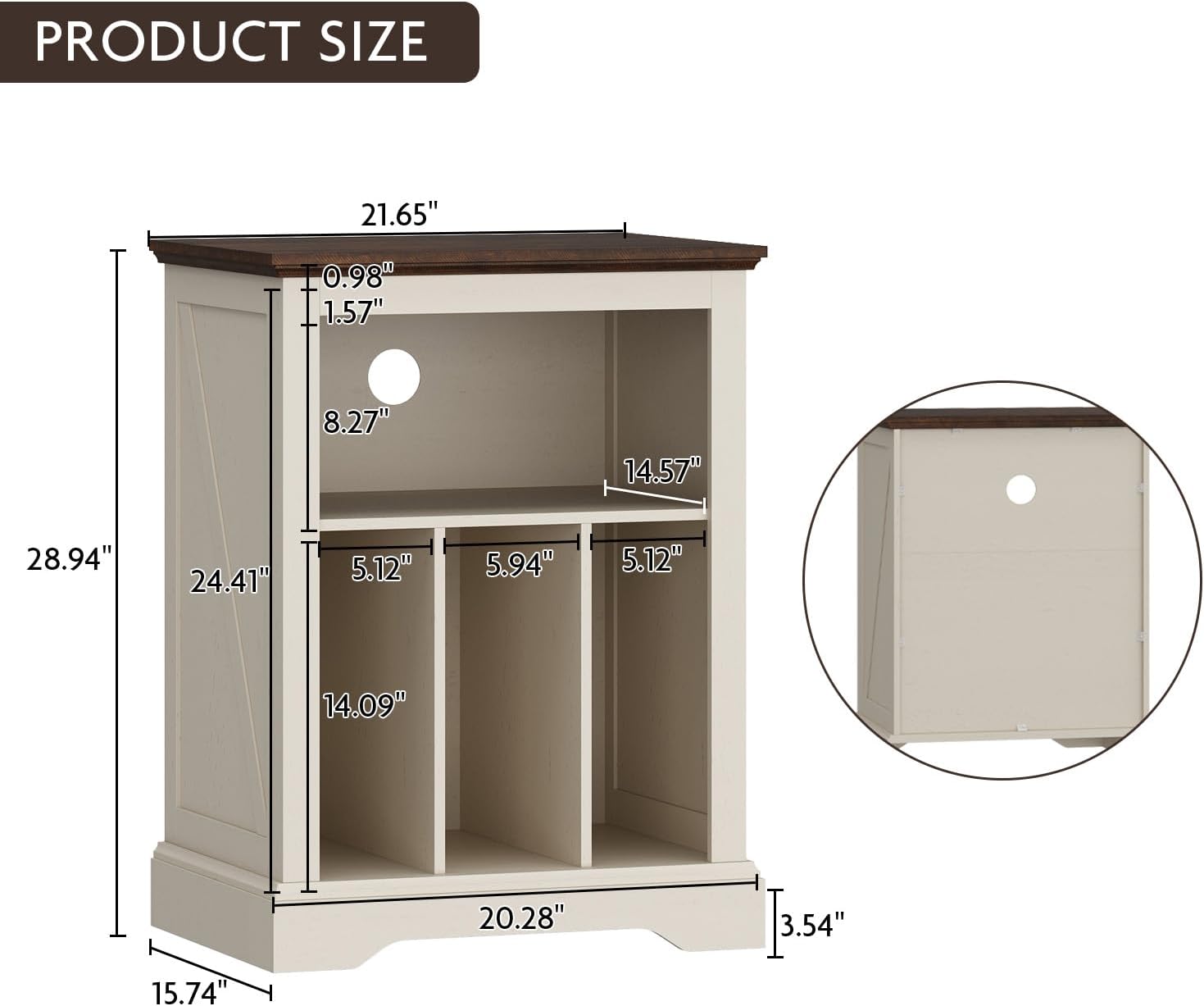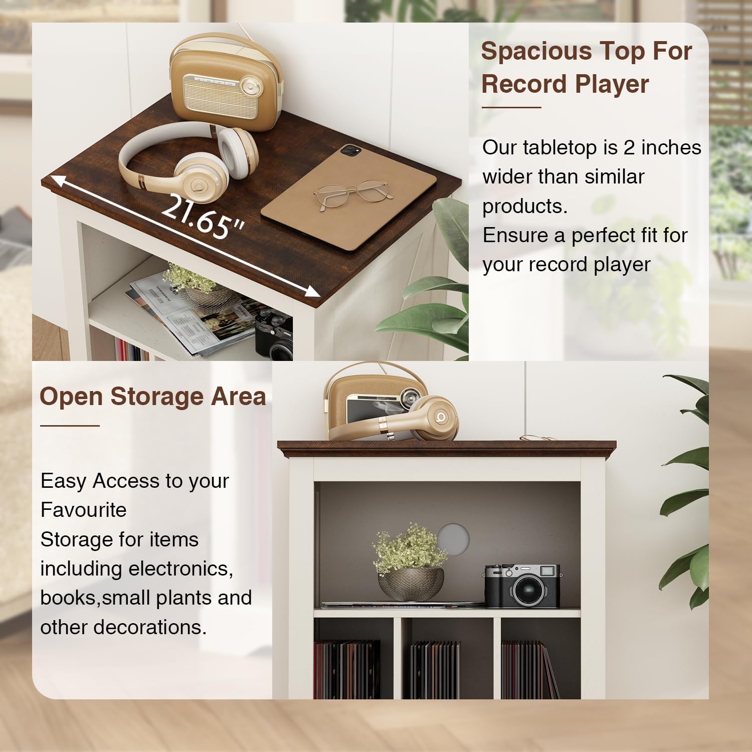Farmhouse Record Player Stand, 3 Tier End Table, Turntable Stand with Vinyl Record Storage, Wood Record Holder Cabinet Dispaly Shelf for Living Room,Bedroom,Office,Antique White