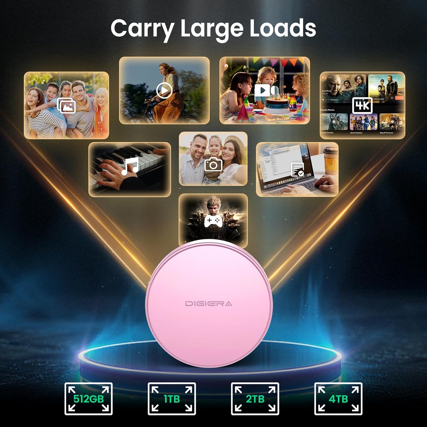 - Ample Storage to Shoot and Store More: This external solid state drive is available in 512GB, 1TB, 2TB, and 4TB capacities, giving you the space to store more of what matters most: family photo albums, favorite movies, thrilling games, and all the music you rock to. It’s perfect for those balancing work, creative projects, and leisure