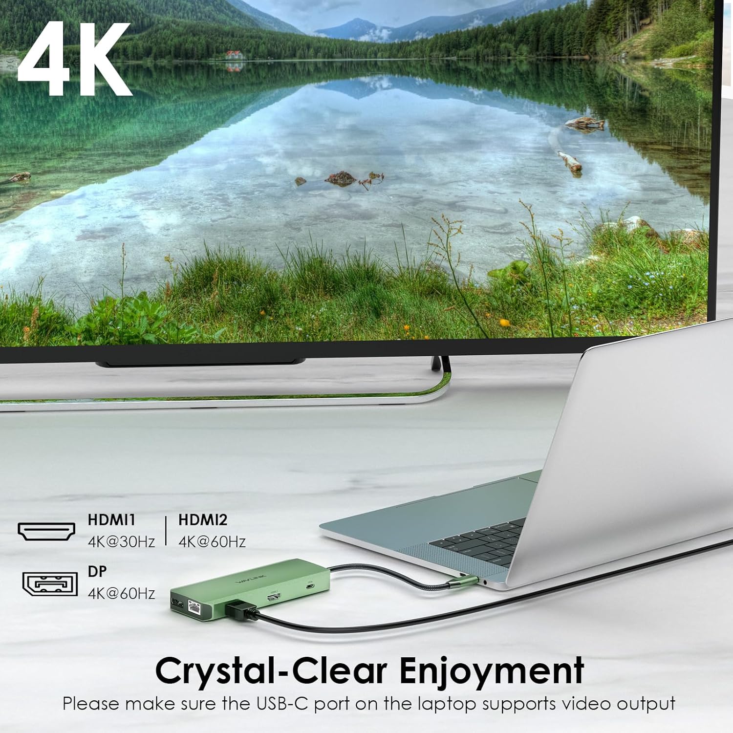 WAVLINK USB C Docking Station Dual Monitor, USB Type C Hub Triple Display, USB C to 2 HDMI,DisplayPort, PD Charging, Ethernet, 5 USB, SD/TF Read, Audio for MacBook Dell HP Lenovo Surface, Green