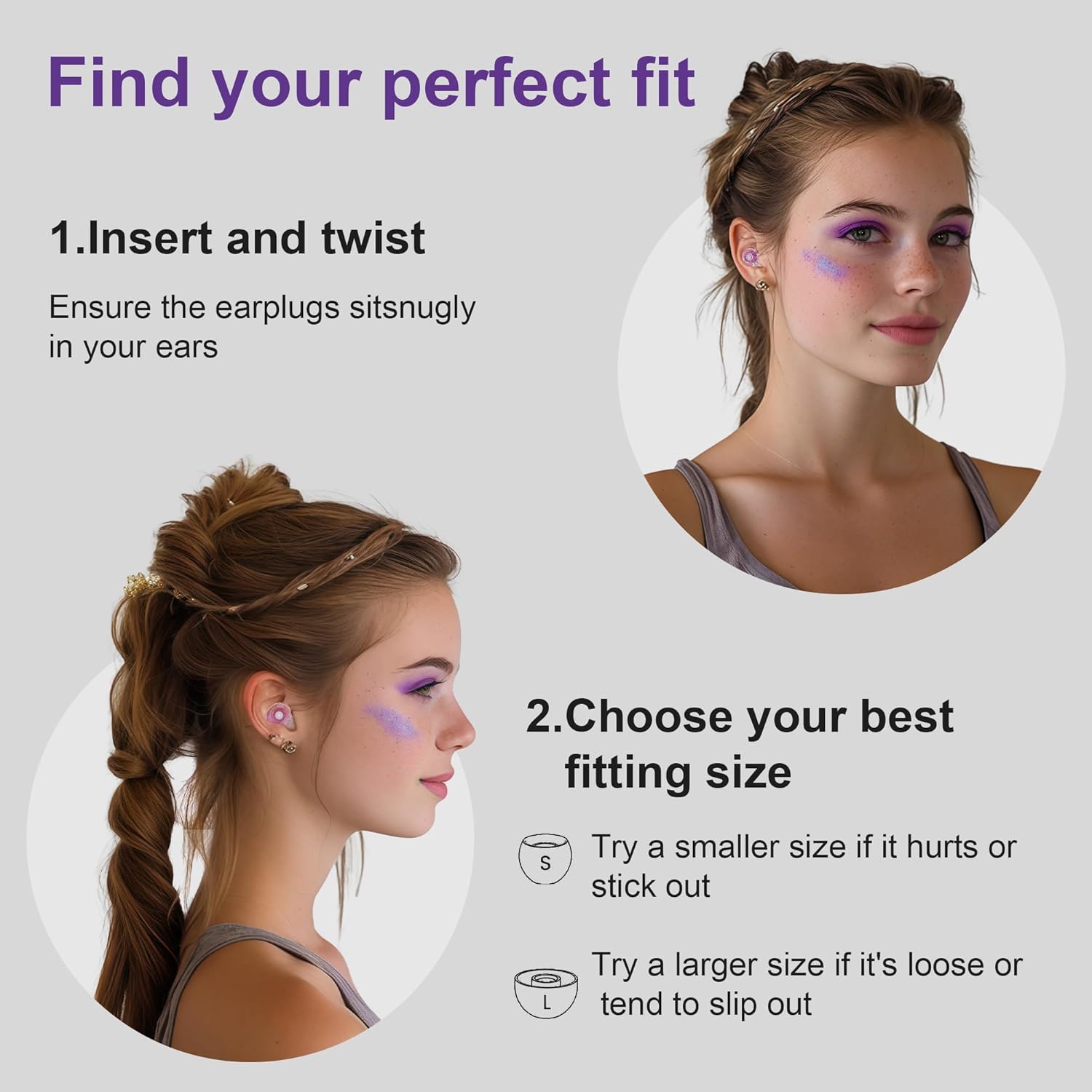 Ear Plugs for Concerts, 2 Pack High Fidelity Ear Plugs, Reusable Silicone Earplugs for Concert, Rave, Work, Musicians, 5 Pair Ear Tips in S/M/L, 18-25 dB Concert Ear Plugs for Noise Cancelling(Purple)
