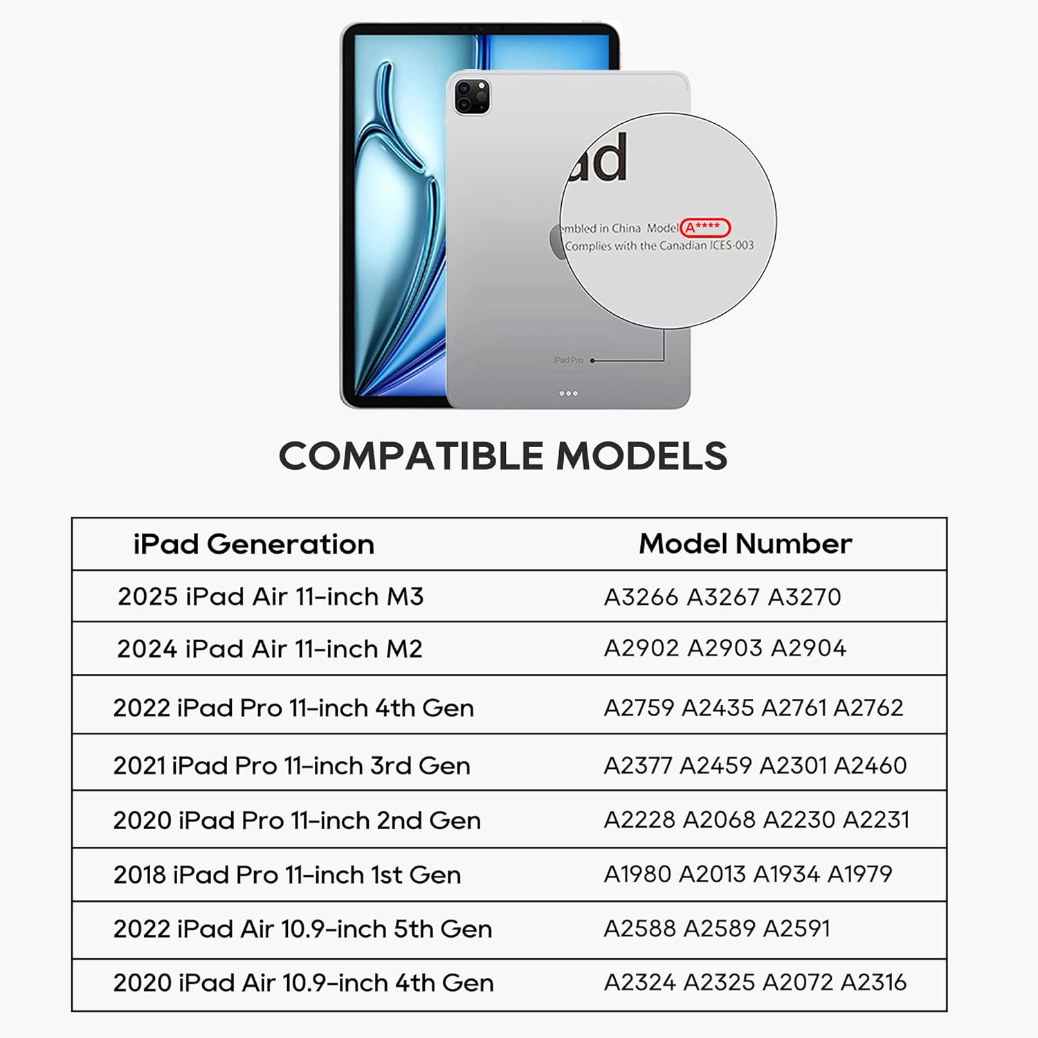 - Compatible Devices : Apple iPad Air 10.9-inch (5th-4th Gen), Apple iPad Air 11-inch (M2&M3), Apple iPad Pro 11-inch (4th-1st Gen) Apple iPad Air 10.9-inch (5th-4th Gen), Apple iPad Air 11-inch (M2&M3), Apple iPad Pro 11-inch (4th-1st Gen)