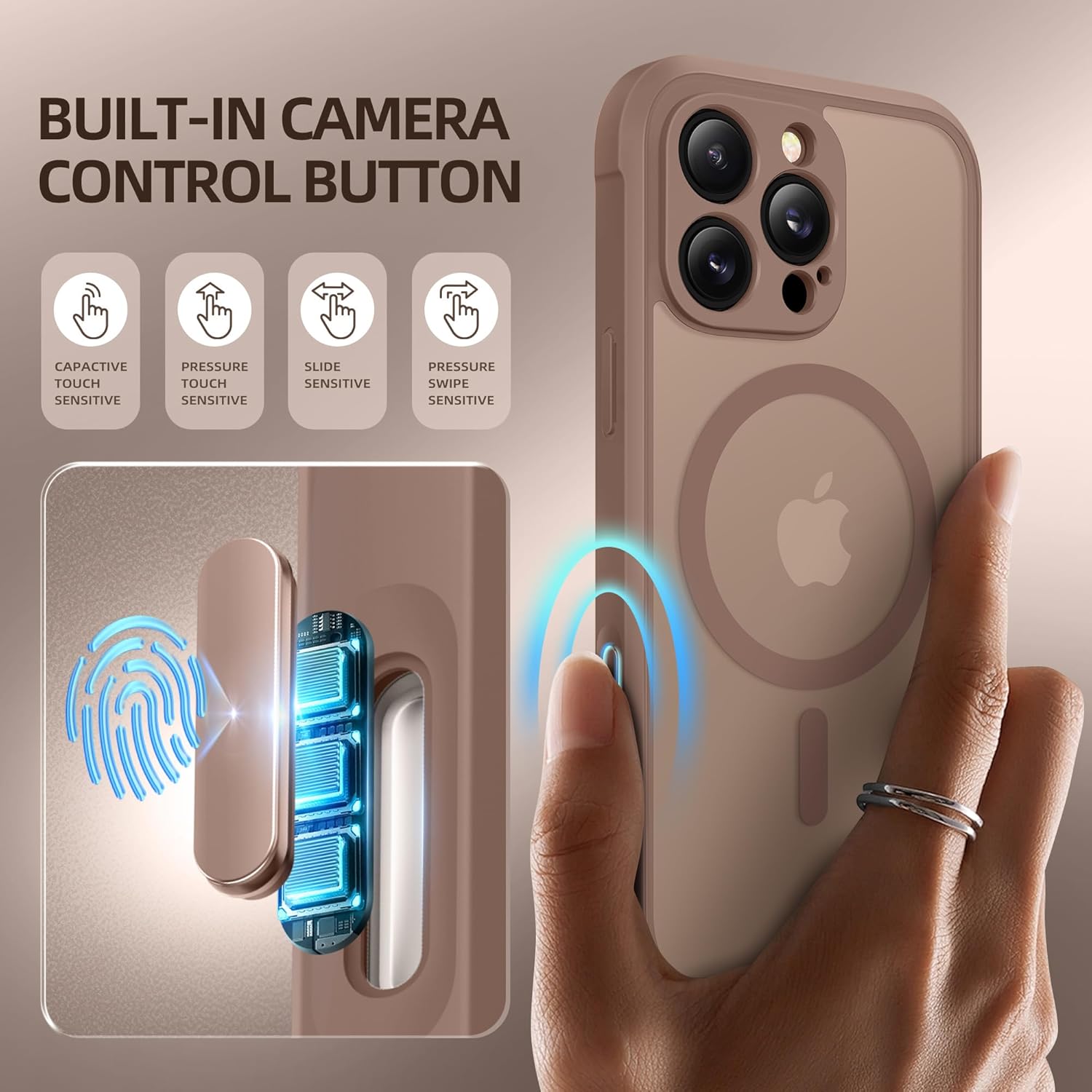 BERFY Magnetic for iPhone 16 Pro Max Case, Compatible with MagSafe, [Built-in 9H Tempered Glass Screen Protector & Camera Protection] Full Body Translucent Matte Phone case for 16 Pro Max, Brown