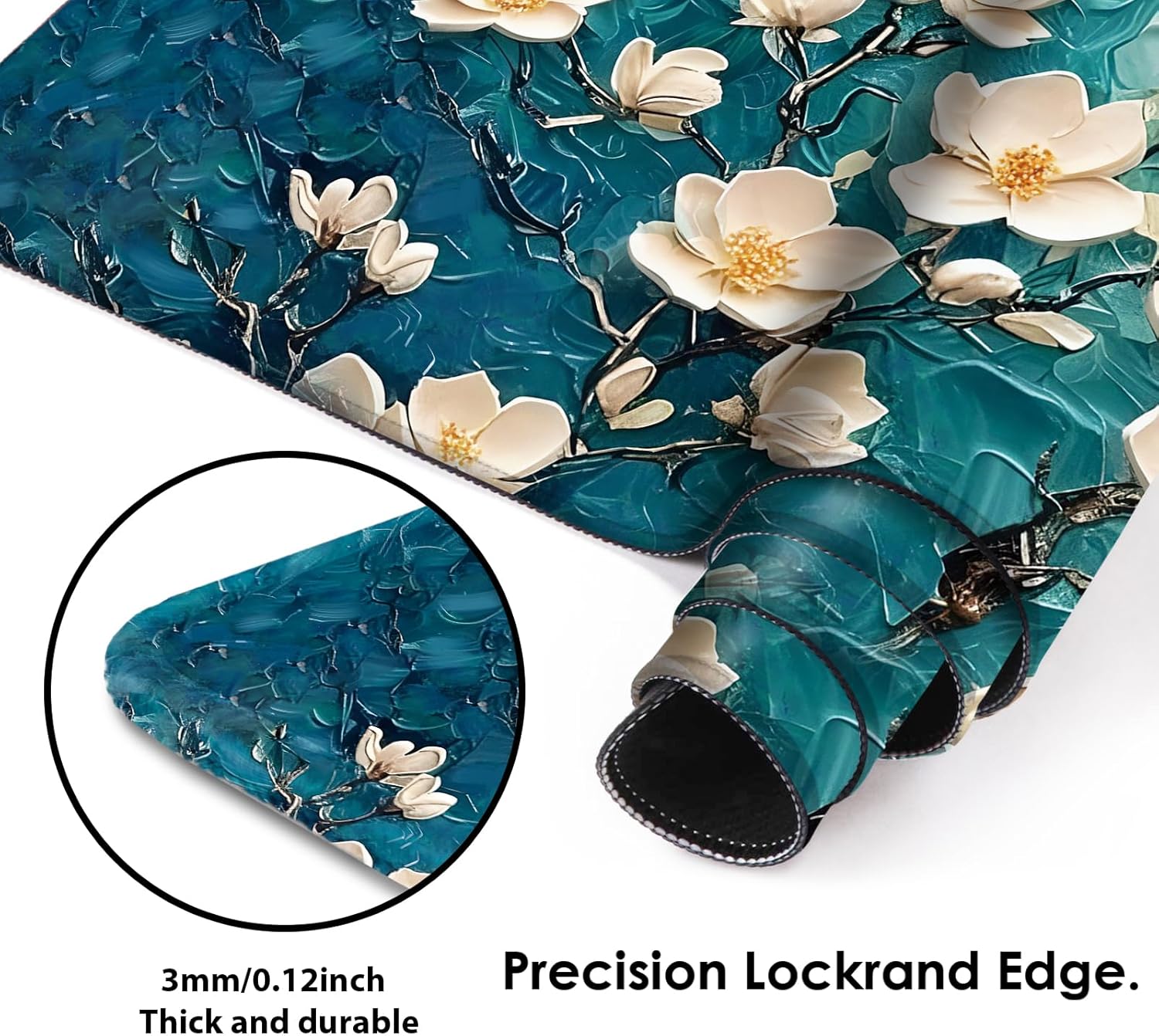 Galdas Gaming Mouse Pad XXL XL Large Long Extended Big Mousepad Non-Slip Rubber Keyboard Desk Pad with Stitched Edges for Laptop Home Office (31.5x11.8x0.08 Inch) … (Painting Flowers)