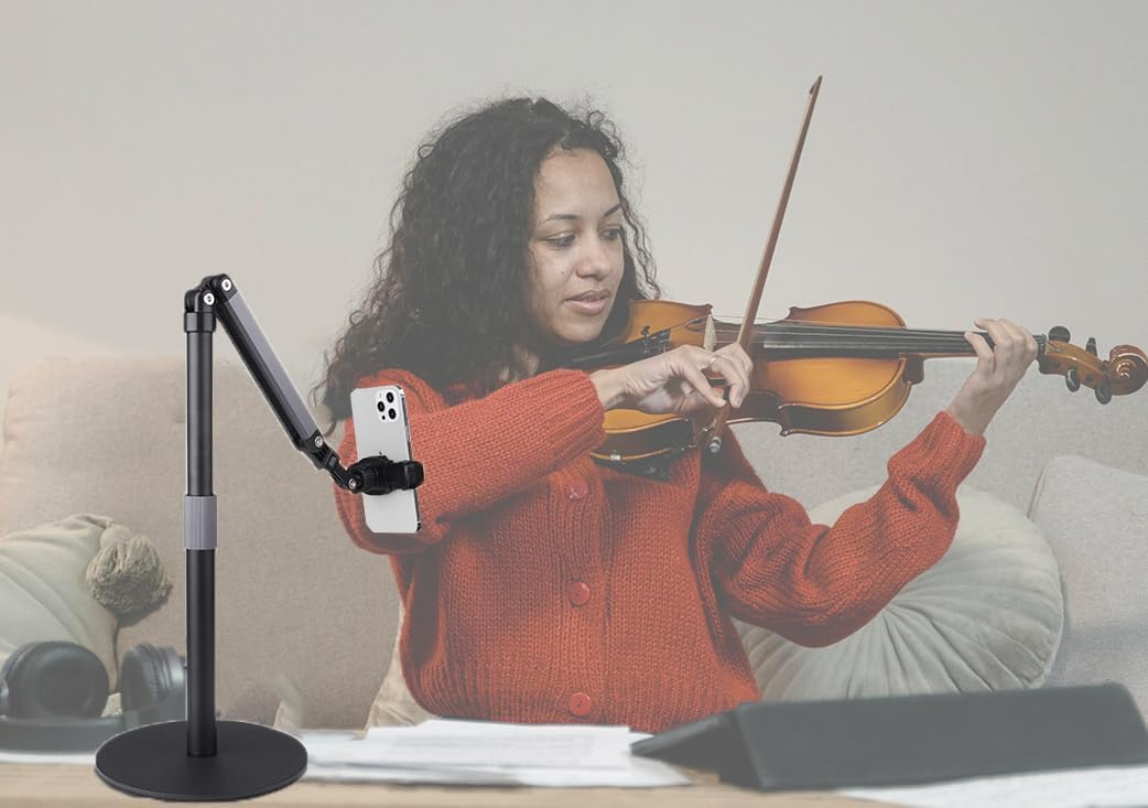 - STRUDY STAND: Solid base, carbon steel pole and aluminium arms. All forms a sturdy floor stand for phone holding and recording.
