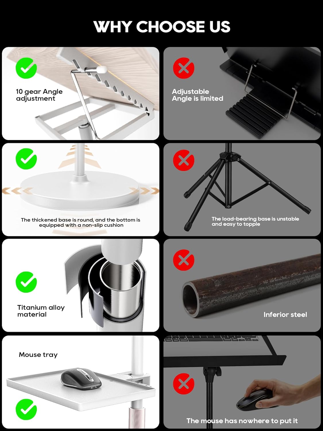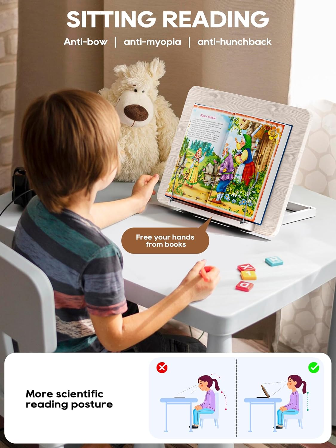 - 10 ADJUSTABLE READING ANGLES: With 10 adjustable angles, the book stand has been thoughtfully designed to provide the best comfort and support, and to reduce the stress caused by incorrect reading postures on the neck, shoulders and lower back.