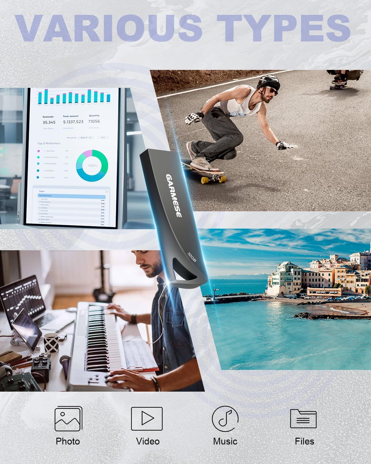 - 【High Capacity】GARMESE 32GB USB 3.0 flash drive can store your photos, videos, music, and documents freely. Large capacity and elegant style are perfect for work, study, business, travel, and entertainment.
