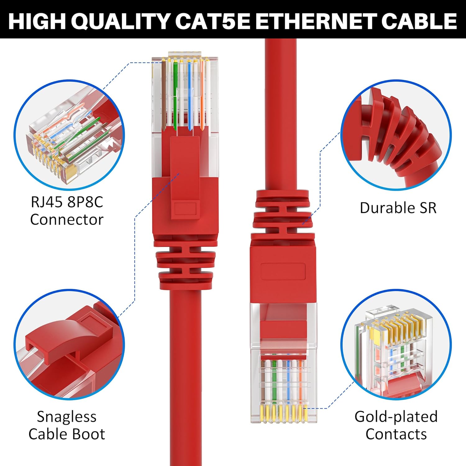 - 【Extremely Cost-effective】: Our Cat5e cables use the price of Cat5, but have higher bandwidth and faster speed. In addition, we offer you 15 free white cable ties, allowing you to easily manage your network cables or other cables.