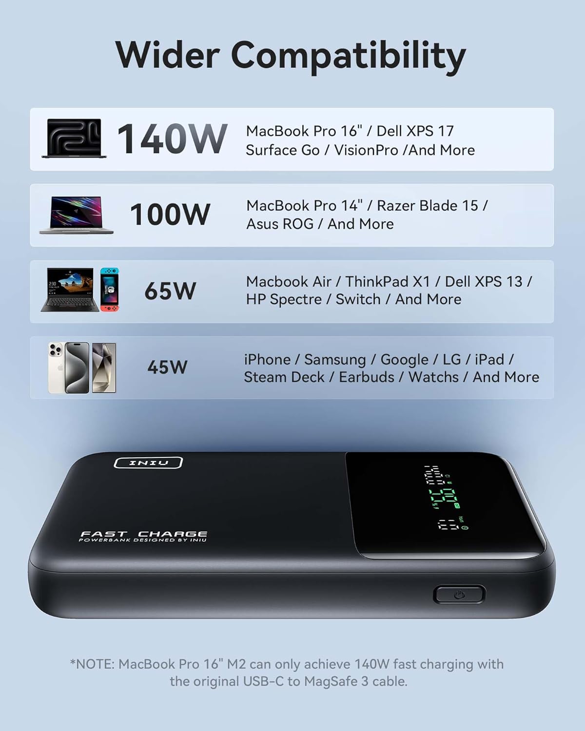 - What You Get: INIU 25000mAh Power Bank*1, 240W USB-C to USB-C Cable 2ft*1, Welcome Guide*1, Industry-leading 3-year iNiu care, and lifetime technical support.