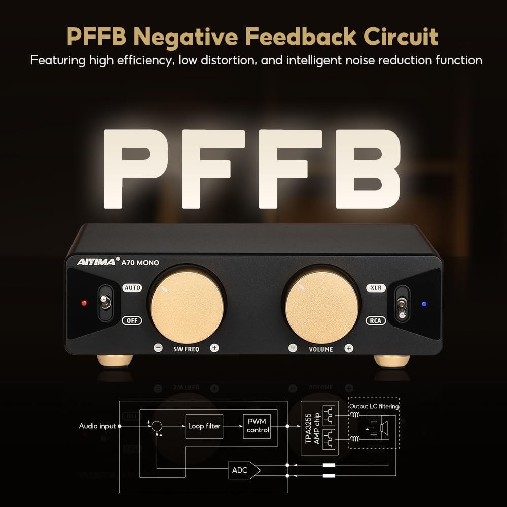 AIYIMA A70 Mono Amplifier with PFFB Home Audio Receiver,TPA3255 Class D Amp with Subwoofer for Home Theater Bookshelf Speaker,with XLR & RCA Inputs & Trigger Input