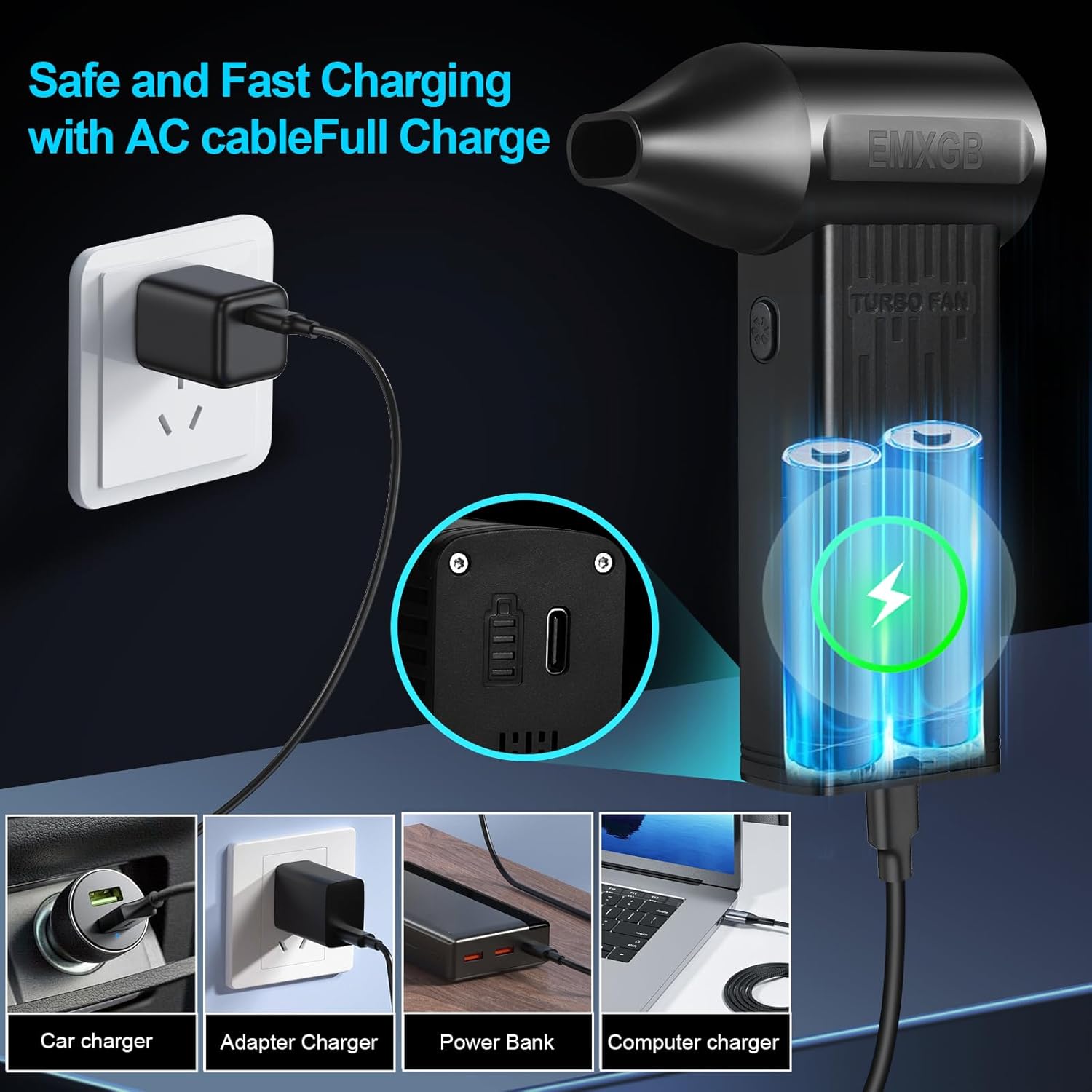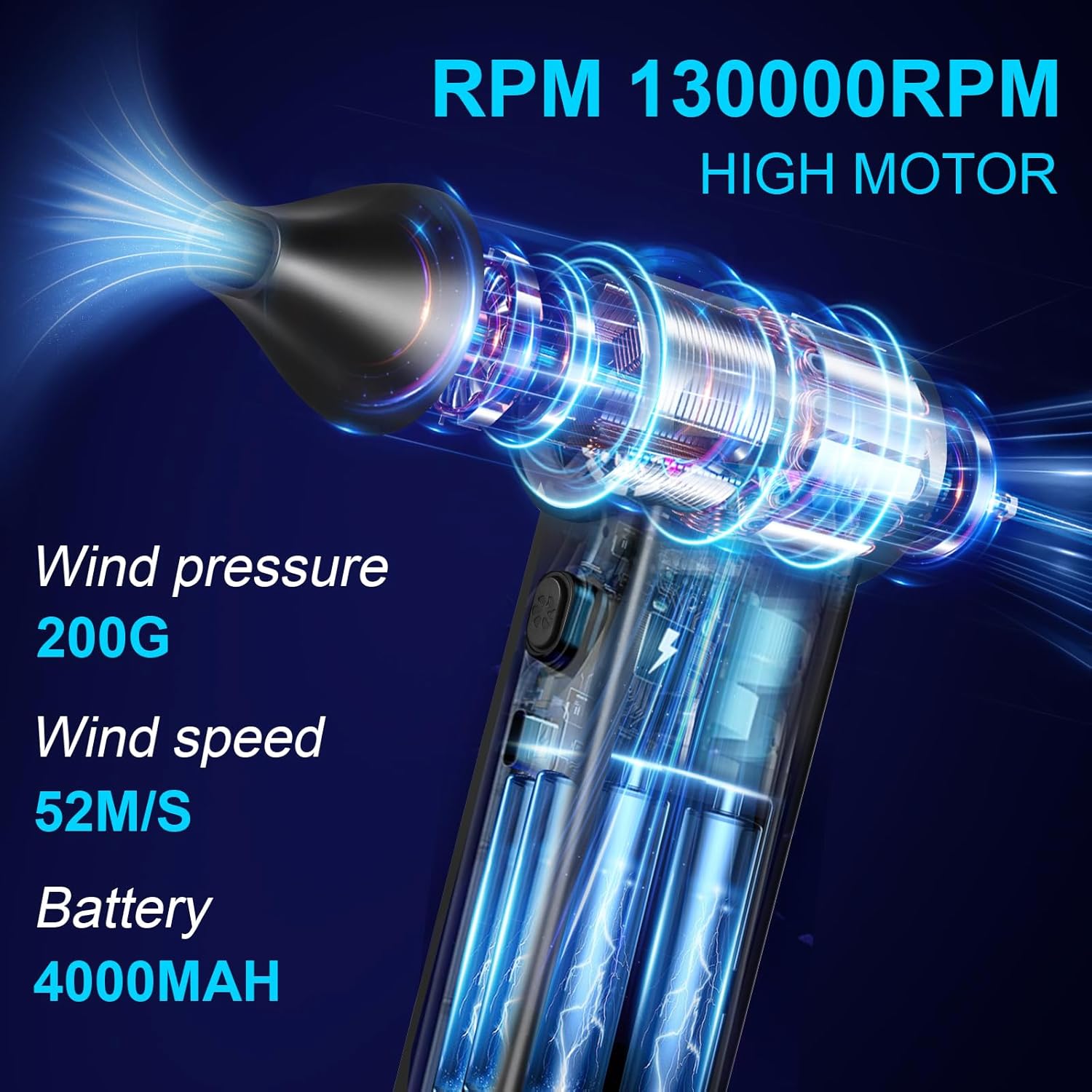 Compressed-Air-Dust Collector-Mini Portable- Turbo Fan- 130000RPM Electric Duster-Cleaning kit- No Canned- Replace Compressed air can- Car Dryer air Blower- Pc dusters forCleaning