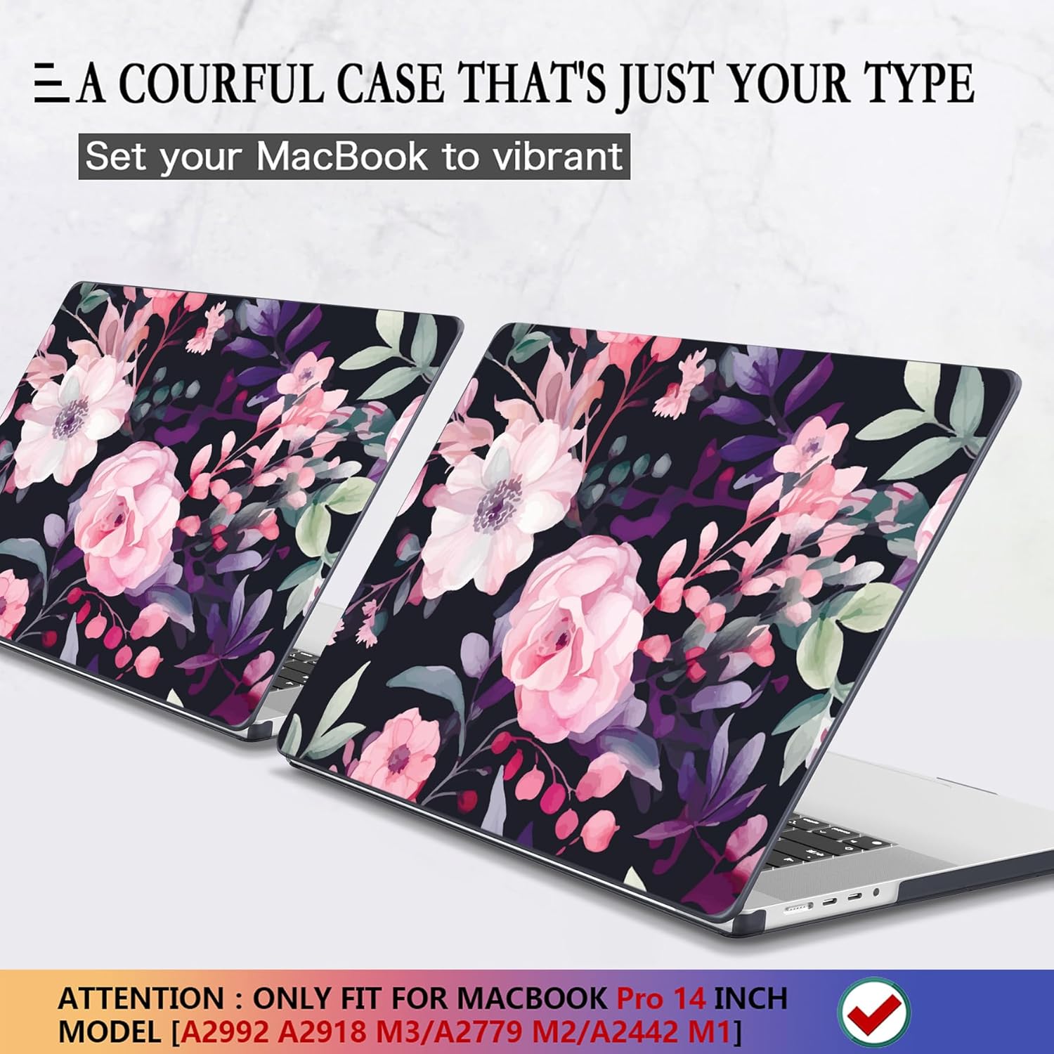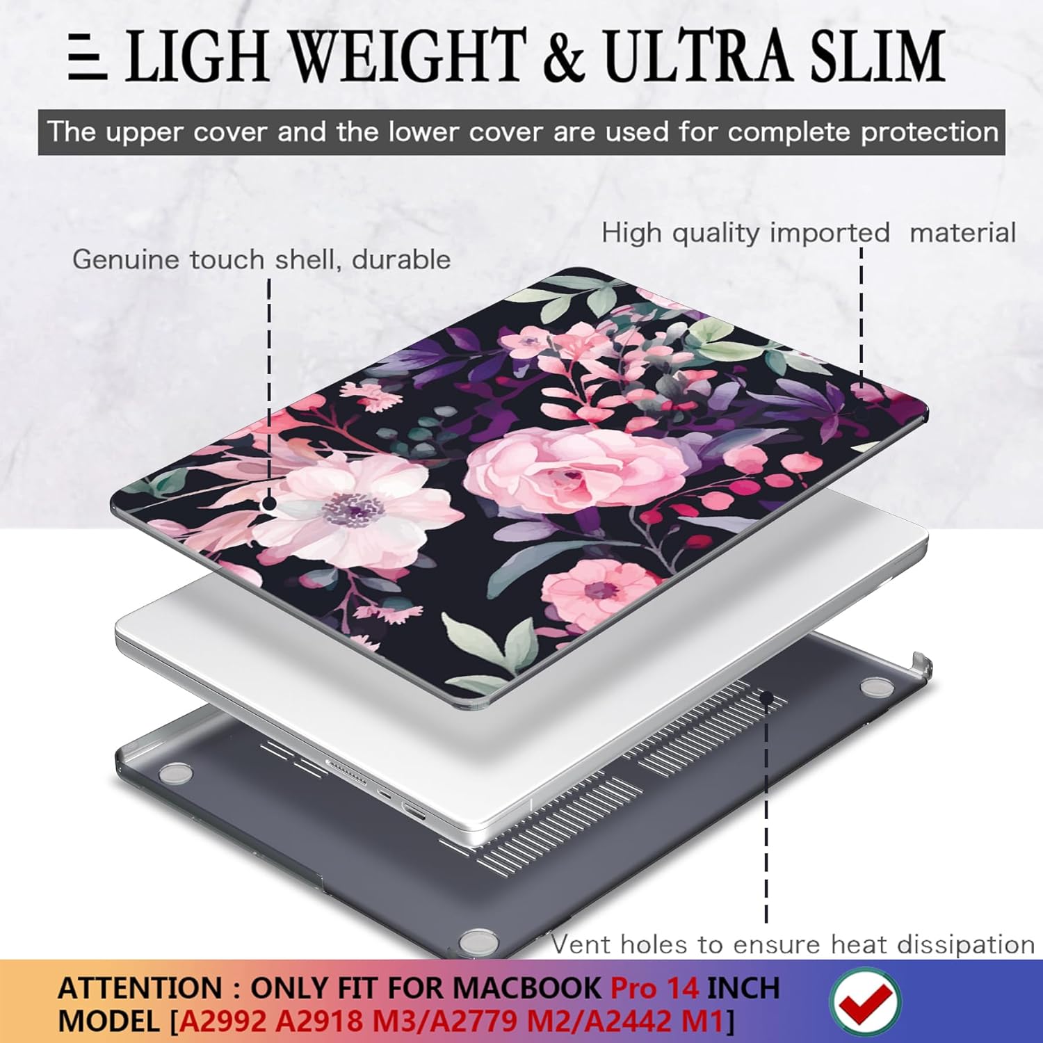 CISSOOK Compatible with MacBook Pro 14 inch Case M4 A3112 A3185 A3401 M3 A2992 A2918 M2 A2779 M1 A2442 Chip 2024 2023 2022 2021 Release, Plastic Hard Shell for MacBook Pro 14.2, Pink Flowers
