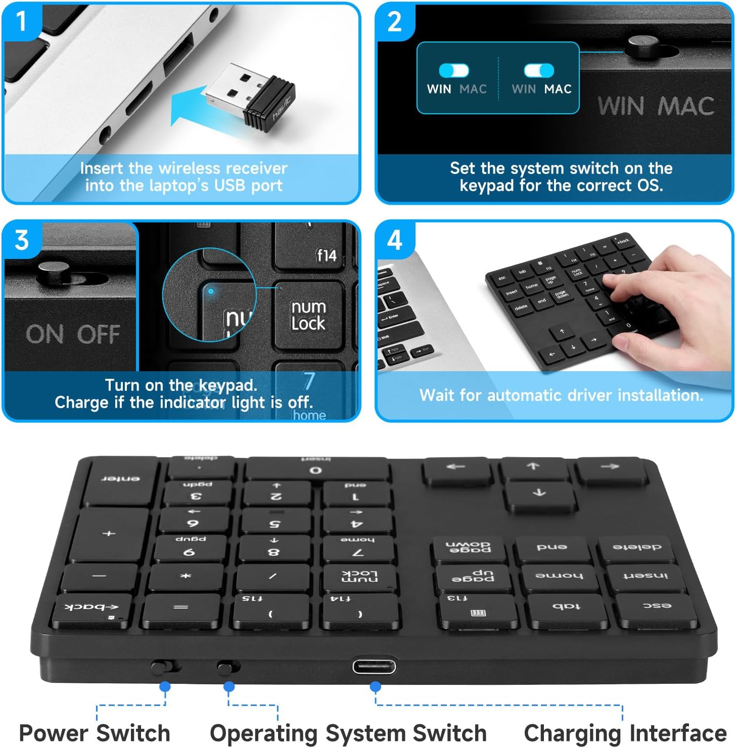- Full Compatibility with Mac OS and More: Specially designed for Apple users, this number pad works flawlessly with Mac OS, iPads, and other devices. Also compatible with Windows and Android systems, making it the perfect number pad for laptops