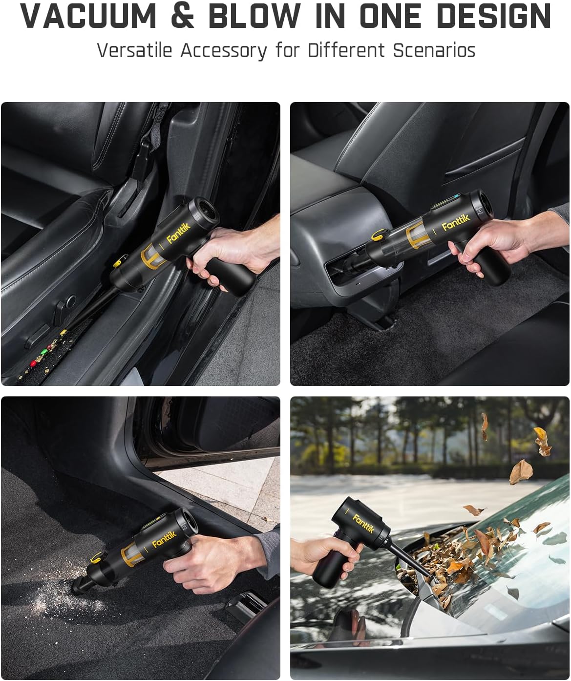 - Note: This car vacuum is compact which is not suitable for cleaning large areas. It is suitable for cleaning the details of the car interior as well as indoor detail cleaning, office desk, computer keyboard dust