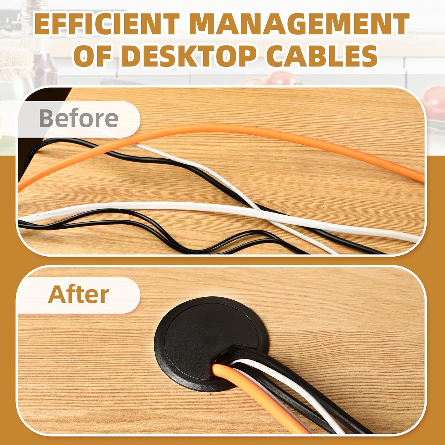 - 【STORAGE AND PROTECTION】 Grommets for desk holes are perfect for managing and hiding cables on desks, computer desks, living room televisions, etc. It also protects the cables from daily wear and tear in other situations and ensures cable safety.
