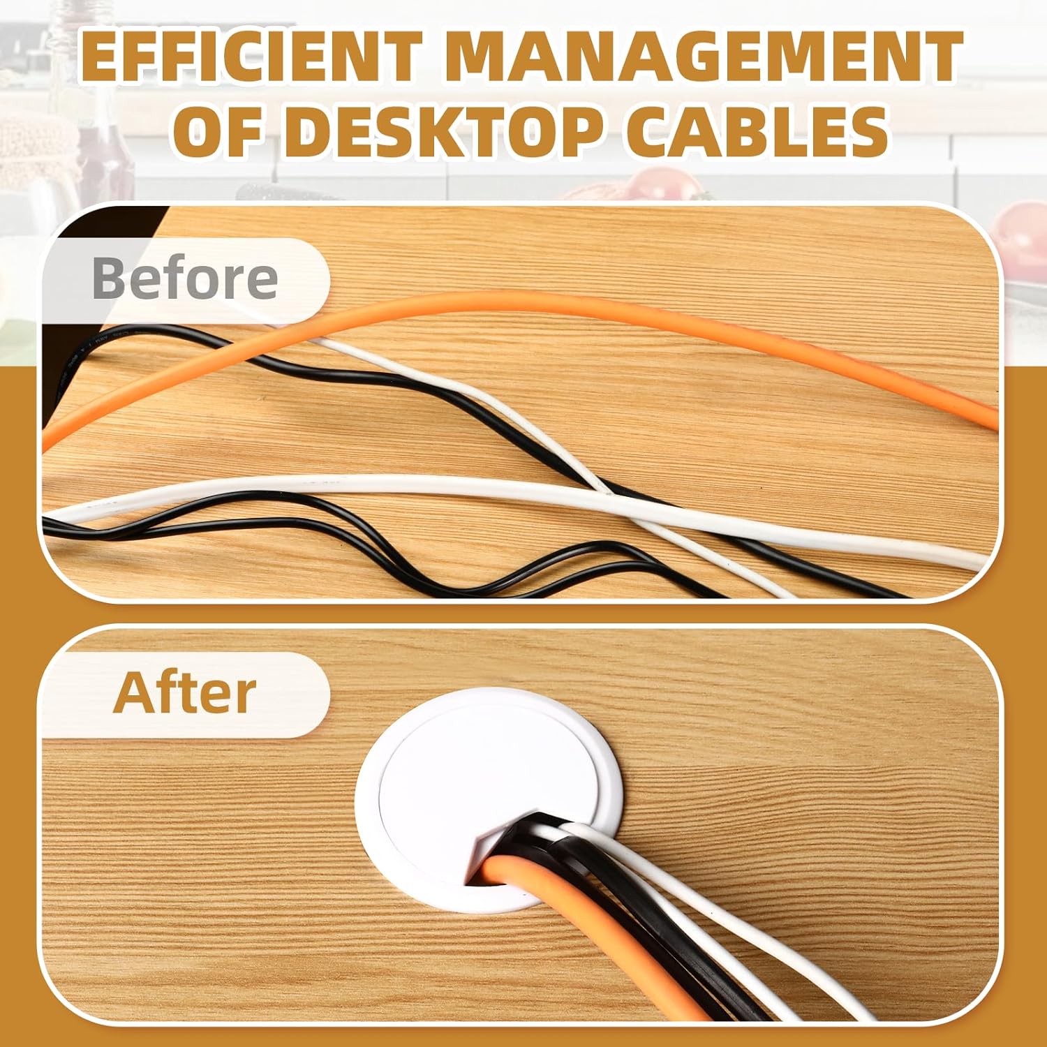 - 【STORAGE AND PROTECTION】 Grommets for desk holes are perfect for managing and hiding cables on desks, computer desks, living room televisions, etc. It also protects the cables from daily wear and tear in other situations and ensures cable safety.