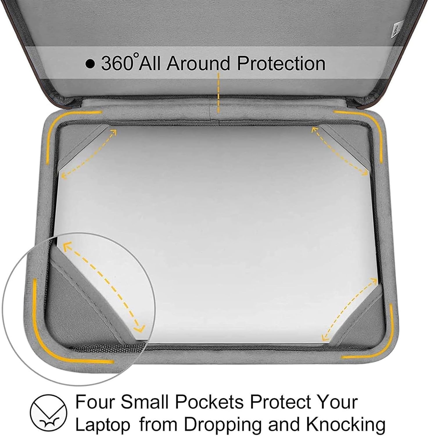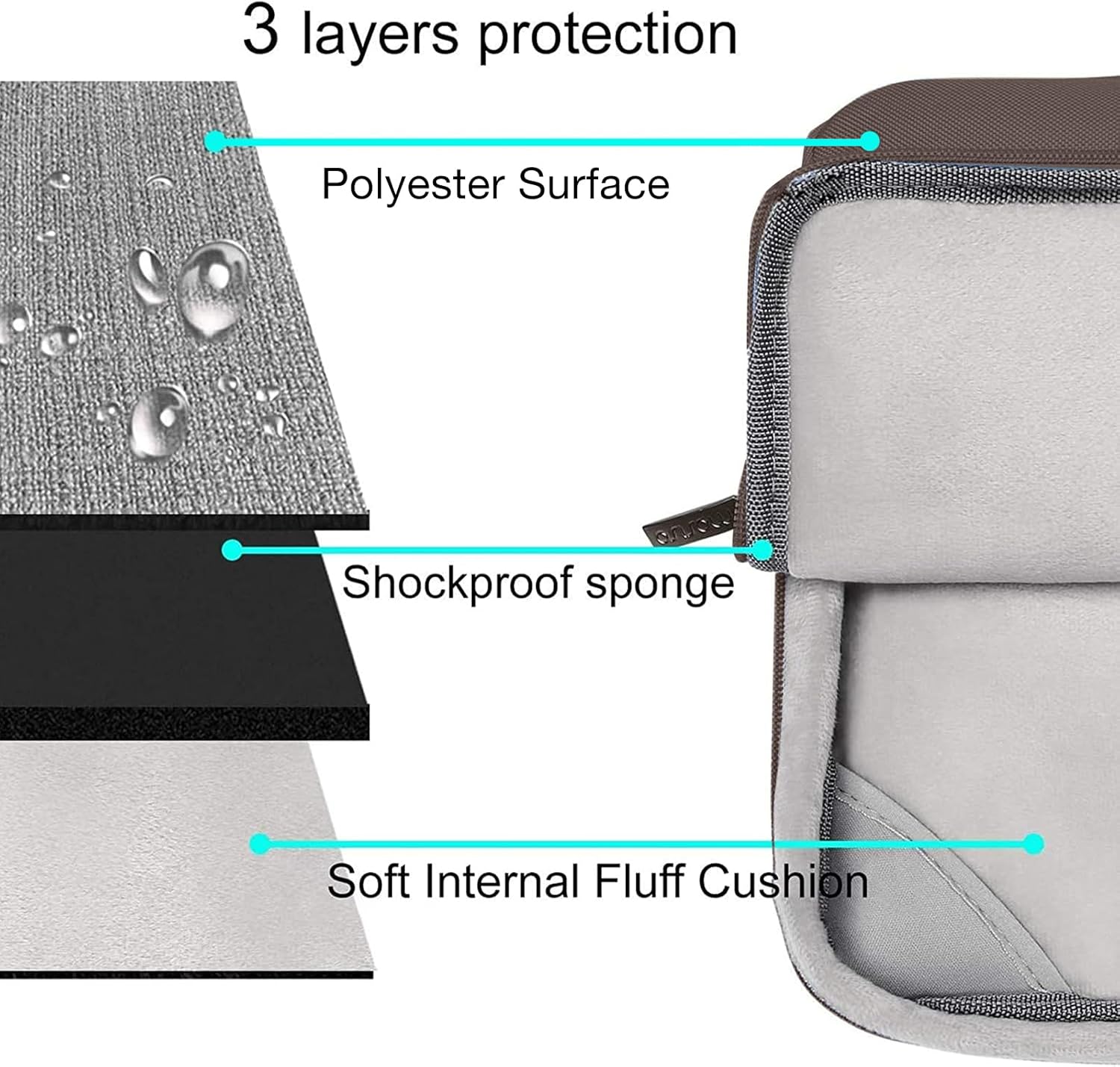- The 360 degree protective shockproof laptop sleeve with handle carrying bag internal dimension: 13.39 x 9.25 x 0.79 inches (L x W x H); external dimension: 13.98 x 9.84 x 0.79 inches (L x W x H). The front side pocket dimension: 11.61 x 9.25 inches (L x W). Made of polyester material, protect your laptop against accidental spills. Slim and lightweight, does not bulk your device up and can easily slide into your briefcase, backpack or other bag. Ideal for business, daily and travel.